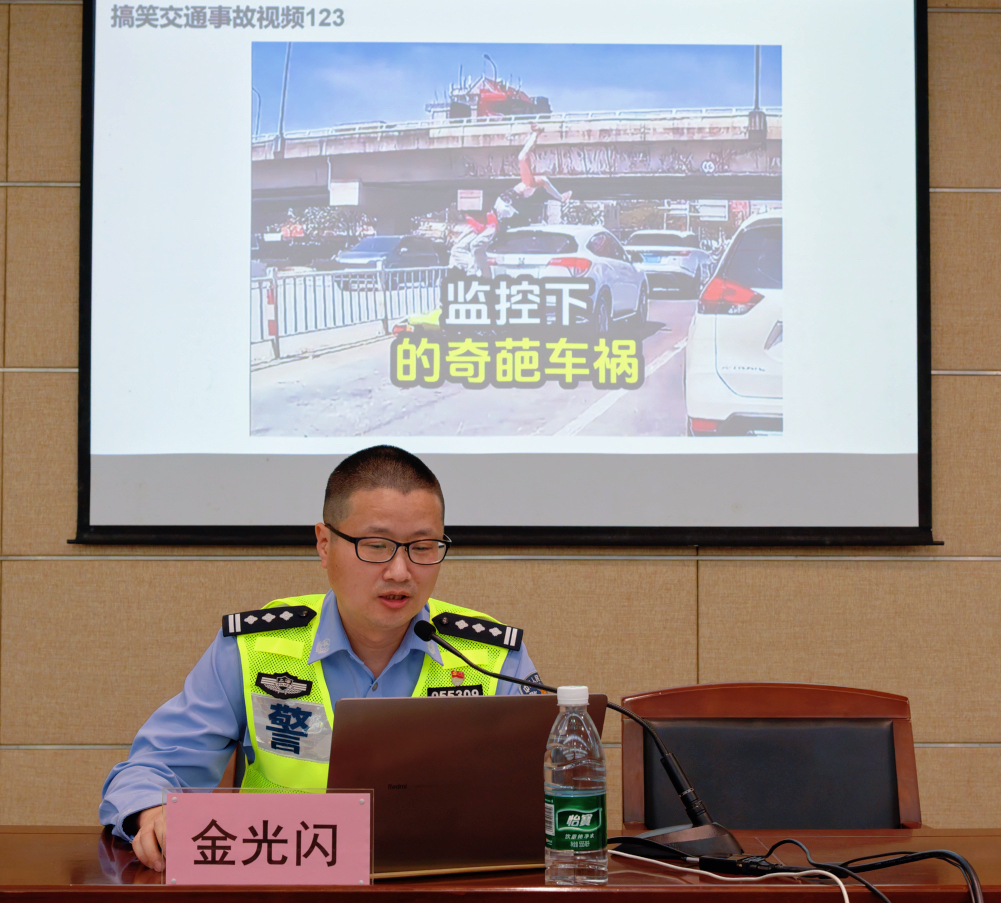 讲座开场,金警官结合校园里发生的案例和交通事故视频,让同学们直观感受到违反交通规则的严重后果,根据大学生出行的特点,围绕校园驾(乘)车、非机动车以及步行等方面,普及了出行安全知识,使同学们深刻认识到交通安全重要性,要时刻遵守交通法律法规,养成安全出行的良好习惯。