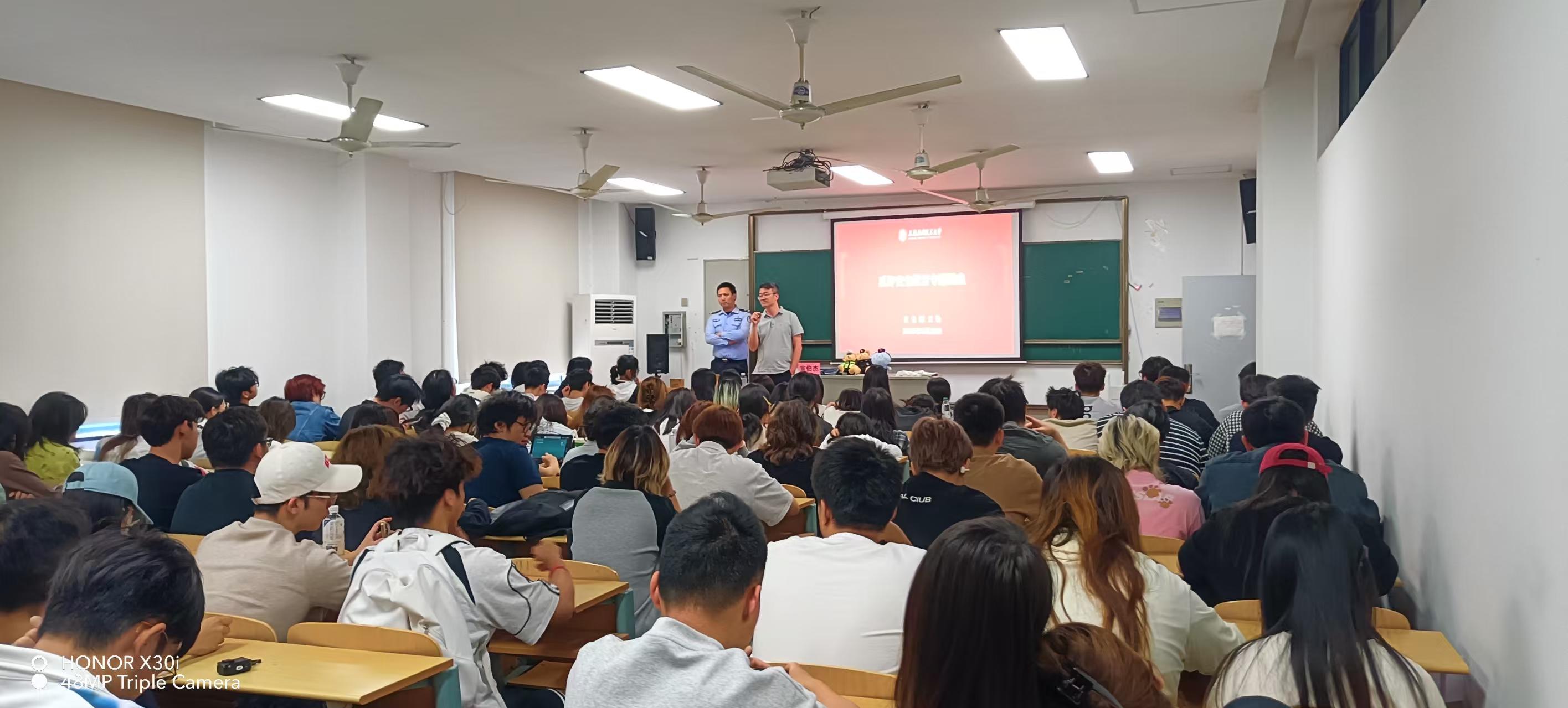室内板块在艺术学院24号楼106多媒体教室开展,沪西高校派出所副所长宣伯杰以“反诈安全教育”为主题,结合大量真实的案例,以案说法,从学生身边的案例进行反诈防范宣讲。活动现场气氛热烈,同学们积极参与互动,踊跃发言,受到同学们的一致好评。