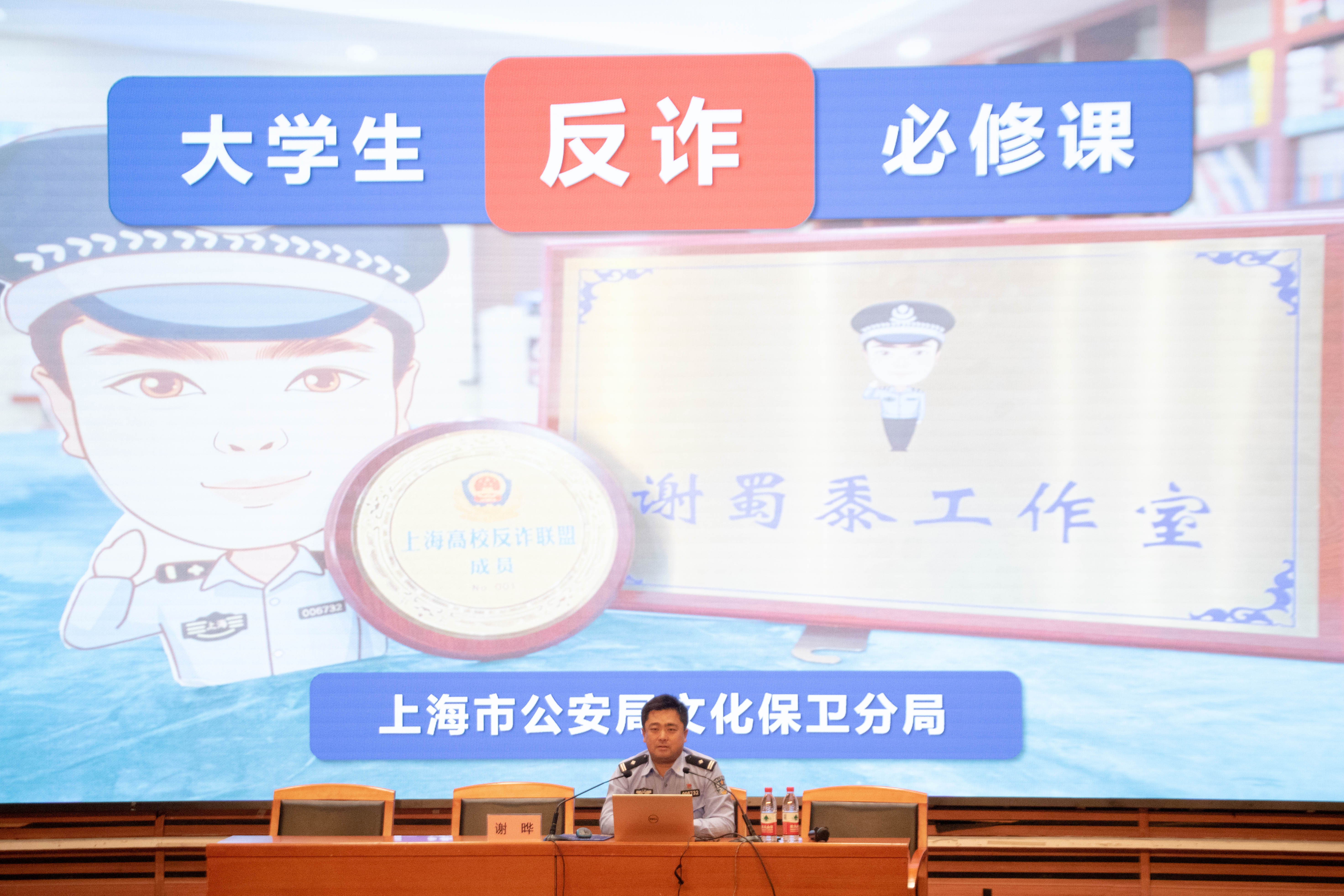 开班仪式结束后,特邀上海市公安局文保分局、上海高校平安志愿者总队导师谢晔警官到校做《大学生反诈必修课》,围绕近阶段发生在大学校园的学生受骗案例,讲解了高发的诈骗手法,深入剖析受骗人被骗原因,起到了很好的警示教育作用。