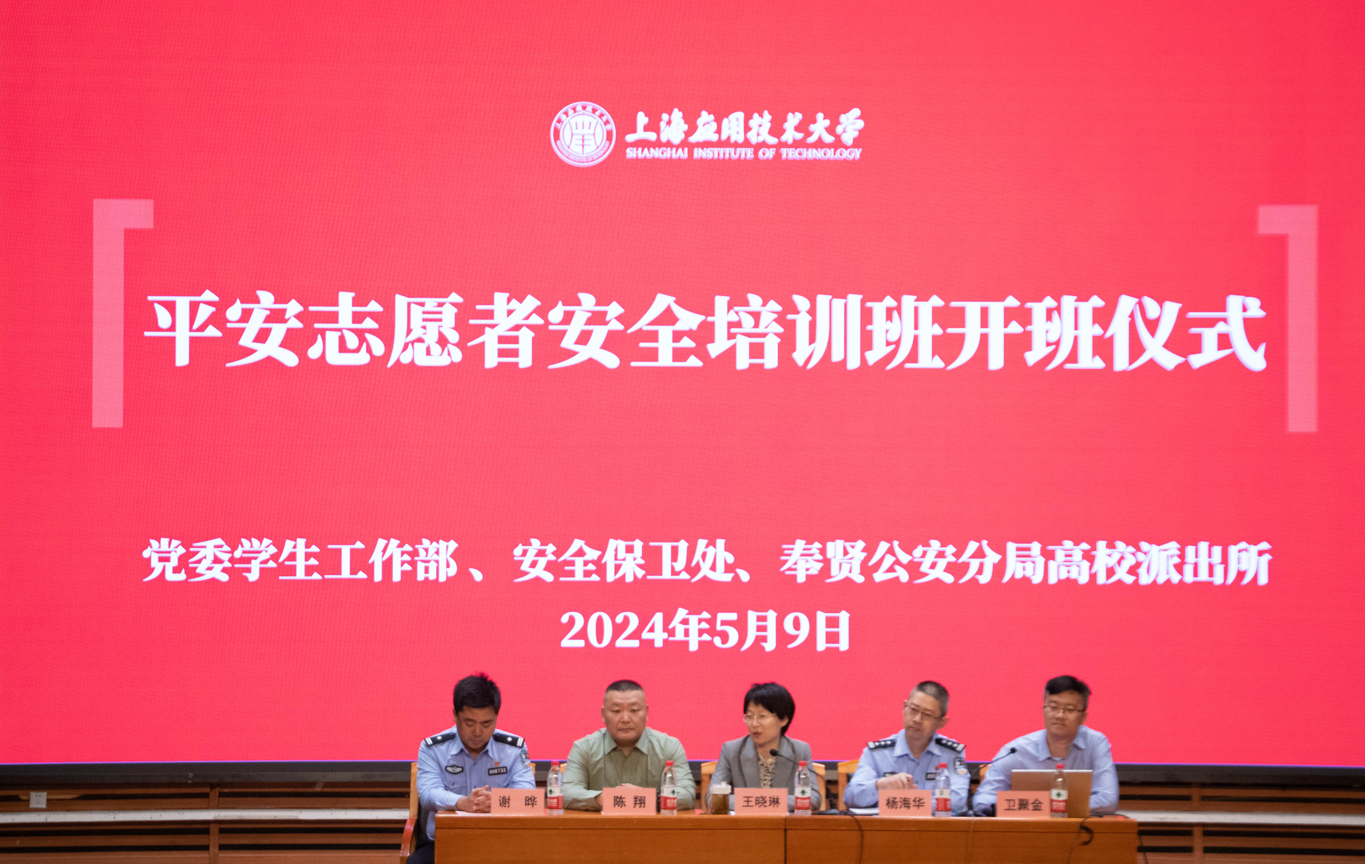 为持续推进平安校园建设,营造安全、和谐、稳定的校园环境,提升我校平安志愿者护校安园的能力和水平,5月9日,安全保卫处联合党委学生工作部、奉贤高校派出所举办2024年平安志愿者安全培训班开班仪式。安全保卫处副处长(主持工作)王晓琳、党委学生工作部副部长陈翔、奉贤高校派出所副所长杨海华出席开班仪式,14个二级学院指导教师及平安志愿者共同参加。