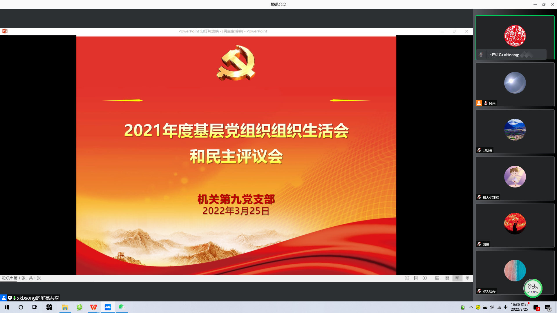 为扎实推进支部党建工作高质量发展,按照学校机关党委工作要求,3月25日,机关第九党支部召开2021年度组织生活会和民主评议党员会。由于近期上海疫情和学校准封闭管理影响,本次会议采用线上腾讯会议举行。