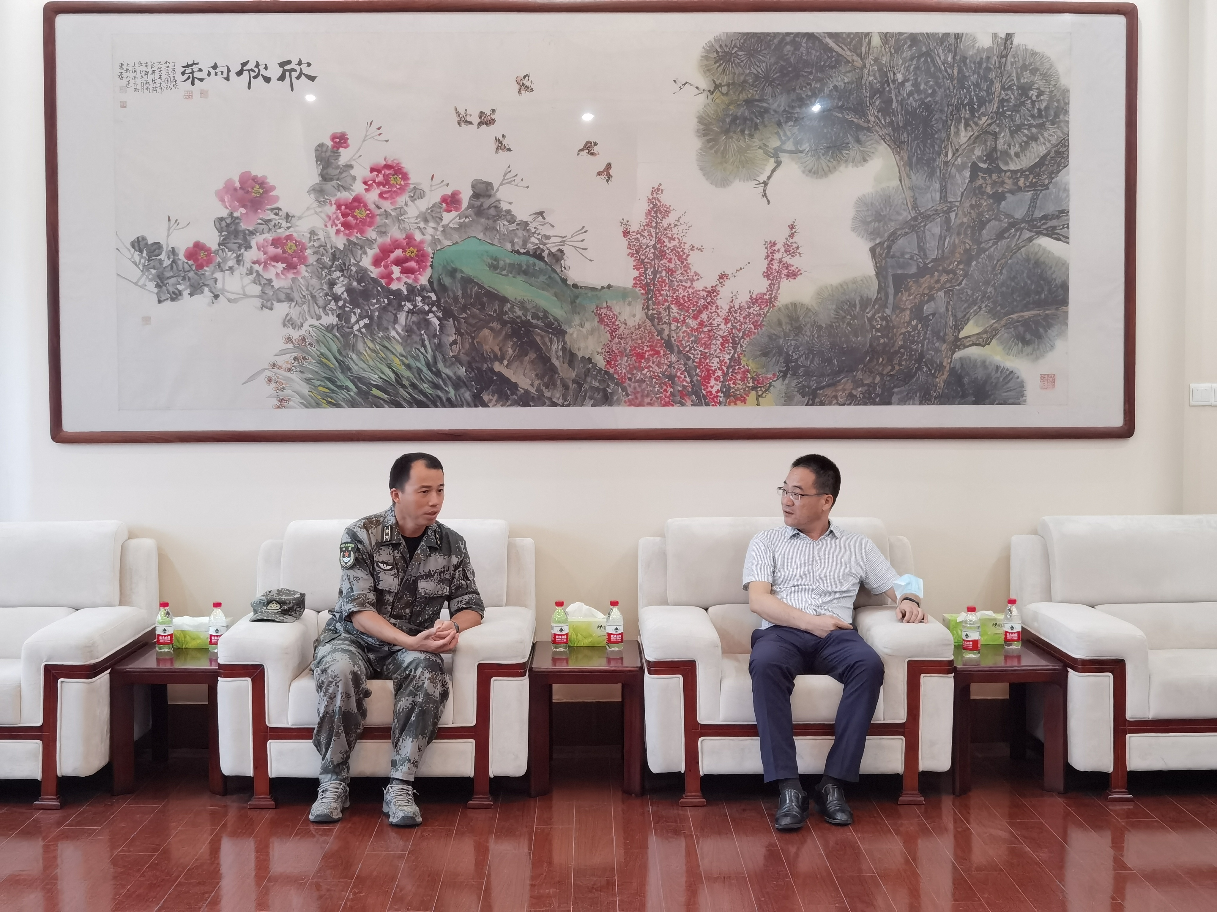 宋明枫对73181部队多年来在国防教育、军训工作等方面给予学校的支持表示感谢,并介绍了今年学生军训工作方案、征兵入伍等情况,希望继续加强双方合作,相互支持、增进友谊,加深军民鱼水情。73181部队政治部副主任郑宏对我校的慰问表示感谢,并表示会选拔精兵强将协助学校完成今年军训工作。