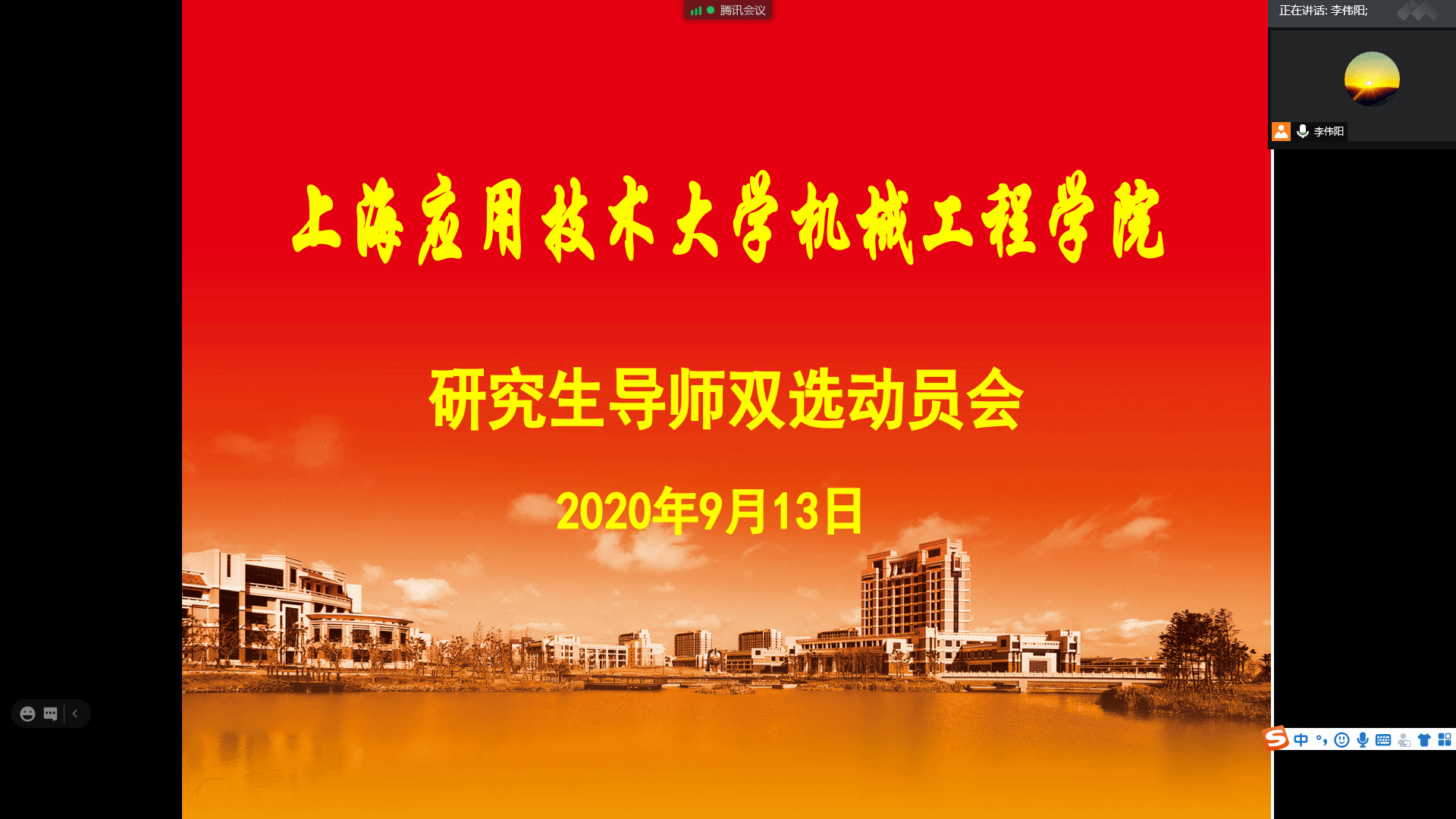 2020年9月13日机械工程学院召开2020级研究生导师双选动员腾讯视频会议,会议由研究生教务秘书李伟阳主持,邀请机械学院副院长张珂老师、宣蒙蒙老师以及辅导员马娜老师出席。