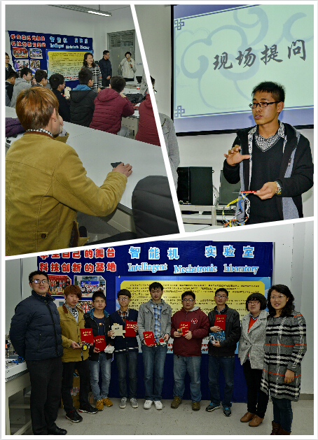 竞赛2014年下半年启动,主要面向大一新生,经过半年培训和层层选拔,最后来自各二级学院的六个小组的六件作品参加了最后角逐。决赛包括参赛者口头汇报、视频演示、现场专家提问互动等多个环节,经过近三个小时的激烈角逐,最后《安卓智能小车》脱颖而出,获得一等奖。
