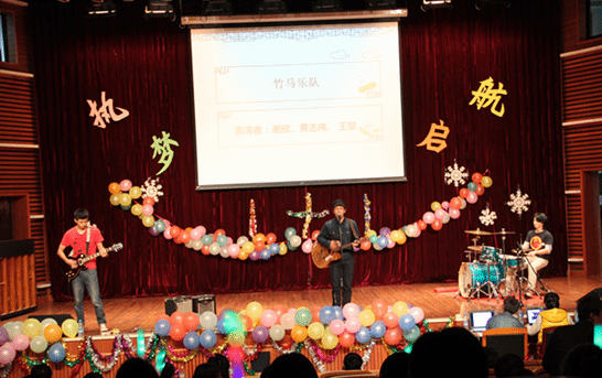 晚会节目丰富多彩,以竹马乐队的《我懂得》开场,引燃了整场气氛。晚会既有钢琴、古筝、笛子的宛转悠扬,也有《韩舞》、《肚皮舞》的动感热辣;既有歌曲独唱及合唱的清新悦耳,又有《红颜劫》舞姿的曼妙优雅;既有相声《那些事》的诙谐幽默,也有《这些年》情景剧、《这儿、希望》诗朗诵的诗意飞扬。精彩的小游戏《Copy不走样》更是将晚会推向了高潮,引来阵阵掌声。晚会在合唱《爱因为在心中》圆满落下了帷幕。