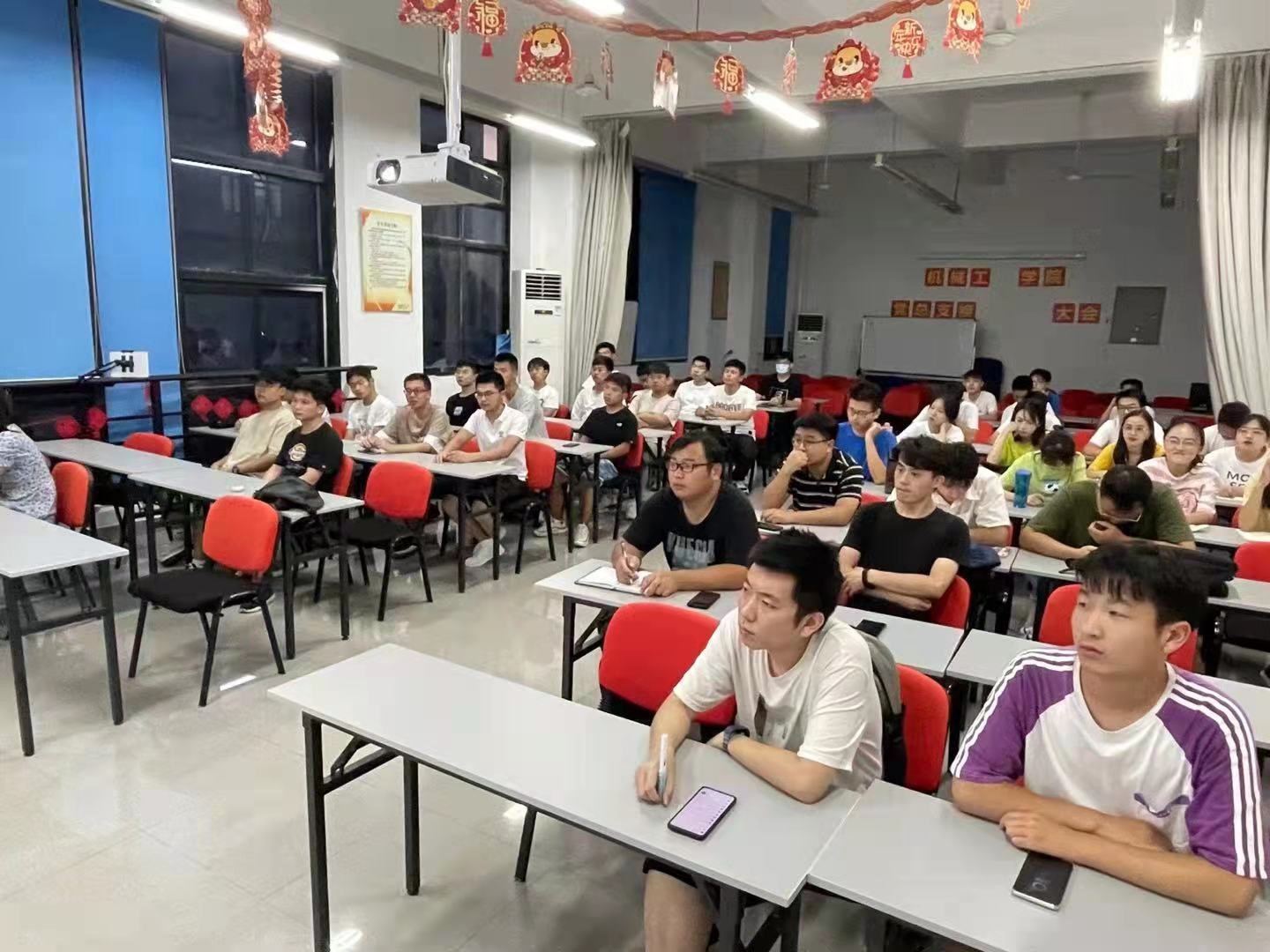 机械工程学院党委组织2021级新生党史学习暨入党启蒙宣讲,9月23日18:00,由黄道宇任组长,蒋慧敏、胡超群为组员的机械学院党史学习宣讲十队于上海应用技术大学第一学科楼A301举行了研究生2160911班的宣讲。组长黄道宇主持了本次宣讲,全体2021级机械电子工程、机械制造及其自动化和机械设计及理论三个专业的研究生新生参加了本次宣讲会。