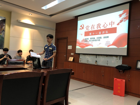 机械工程学院党委组织2021级新生党史学习暨入党启蒙宣讲,9月23日18点,由穆天驰任组长,王亚茹、吴俊昊为组员的机械学院党史学习宣讲十一队于上海应用技术大学第一学科楼A324举行了研究生2160921班的宣讲。组长穆天驰主持了本次宣讲,全体2021级电子信息专业研究生新生参加了本次宣讲会。
