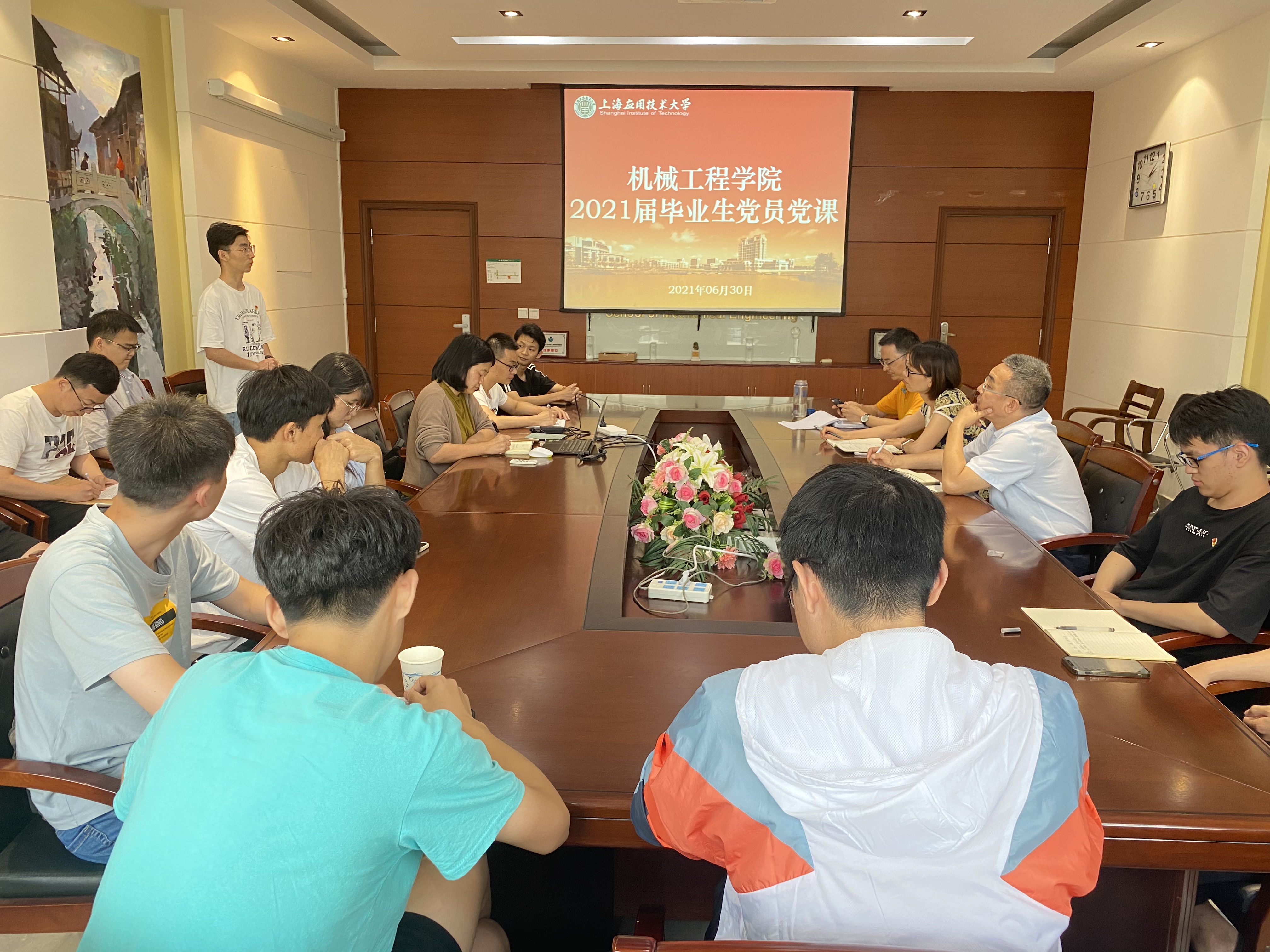 为进一步增强毕业生党员的身份意识,提高毕业生党员的党性修养,6月30日,机械学院党委书记杨瑞君为2021届全体毕业生党员上了一堂生动的党课。机械工程学院党委组织员马轻轻主持会议,学院副书记、副院长宣蒙蒙、本科生第一党支部书记邓士杰、本科生第二党支部书记刘红星以及2021届毕业生党员代表等30余人出席会议。
