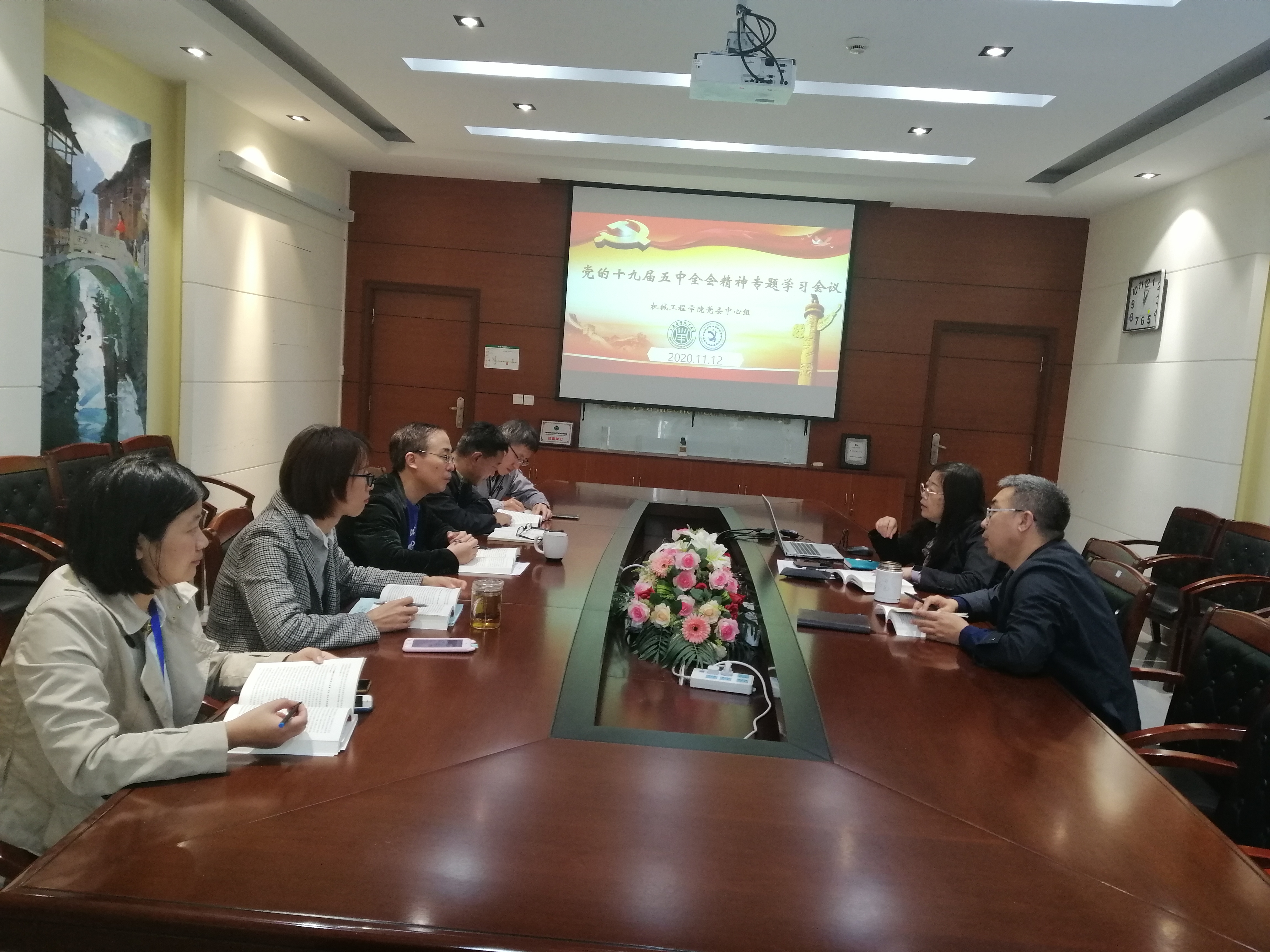 11月12日,机械工程学院党委召开理论学习中心组会议,专题学习党的十九届五中全会精神。学院党委理论中心组成员出席。学院书记杨瑞君主持并结合自身学习情况谈了关于学习十九届五中全会精神的体会和认识。