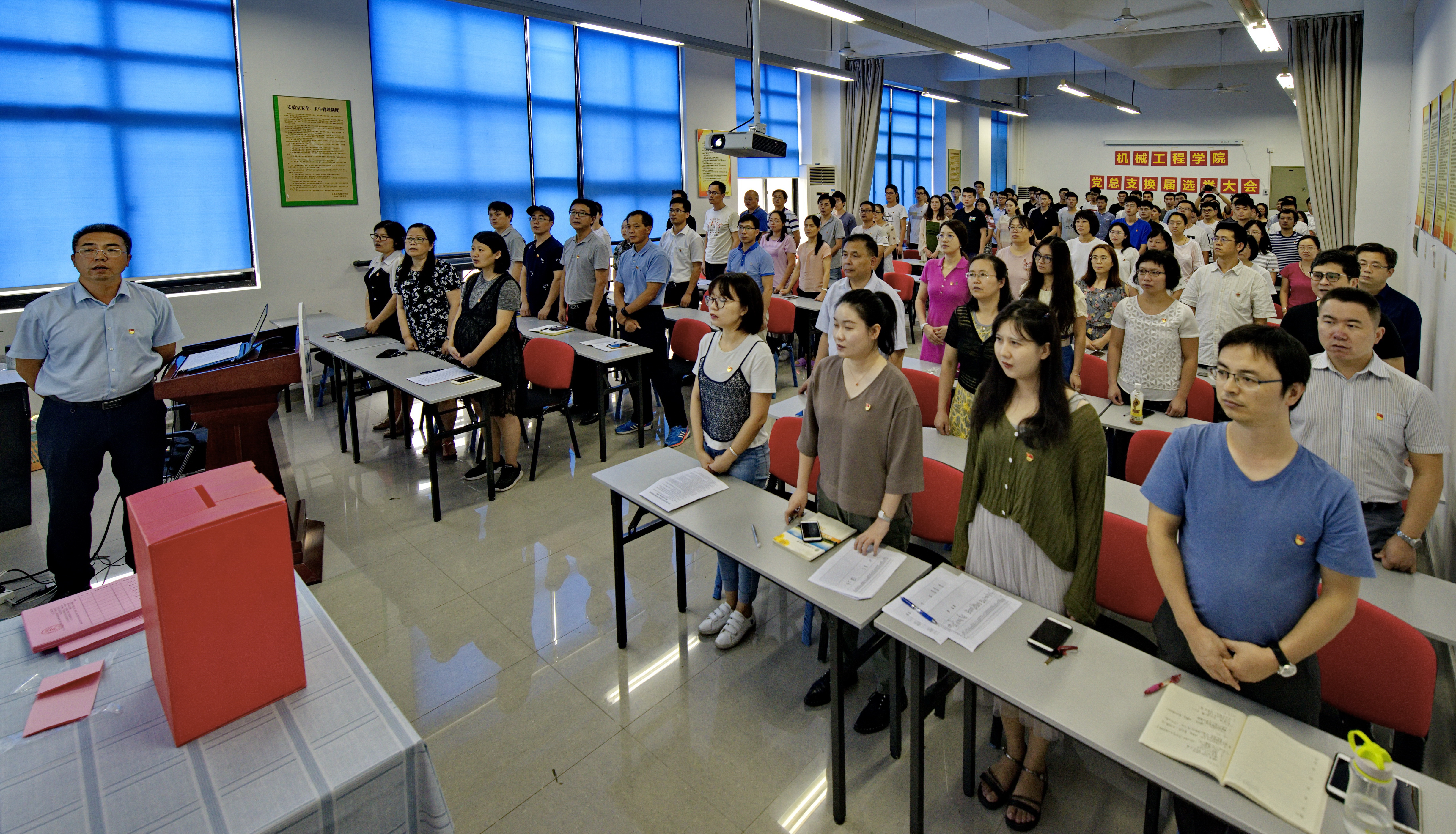 根据机械工程学院党总支换届选举工作的程序和要求,2019年9月6日下午,党总支换届选举党员大会隆重举行,大会由机械学院党总支副书记杨瑞君(主持工作)主持,党总支副书记、院长张慧敏,副院长张珂,教学工作负责人郑刚出席会议,机械学院全体党员参加会议。
