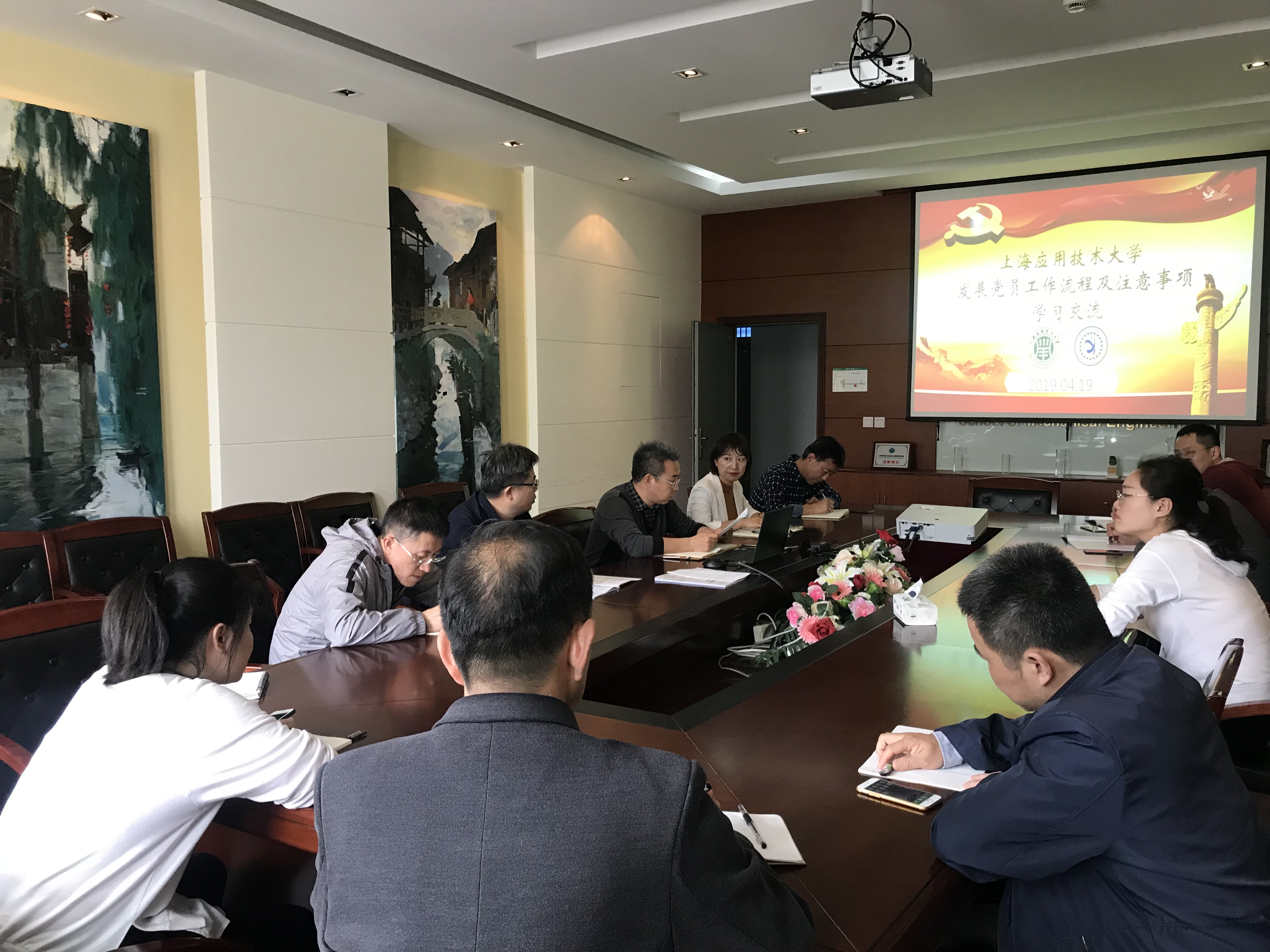 会议组织大家认真学习了中央组织部印发的《中国共产党发展党员工作细则》。在此基础上,认真梳理了《上海应用技术大学发展党员工作流程及材料汇编》。会议要求各党支部在坚持发展党员基本工作流程的基础上结合机械学院特色认真贯彻执行。