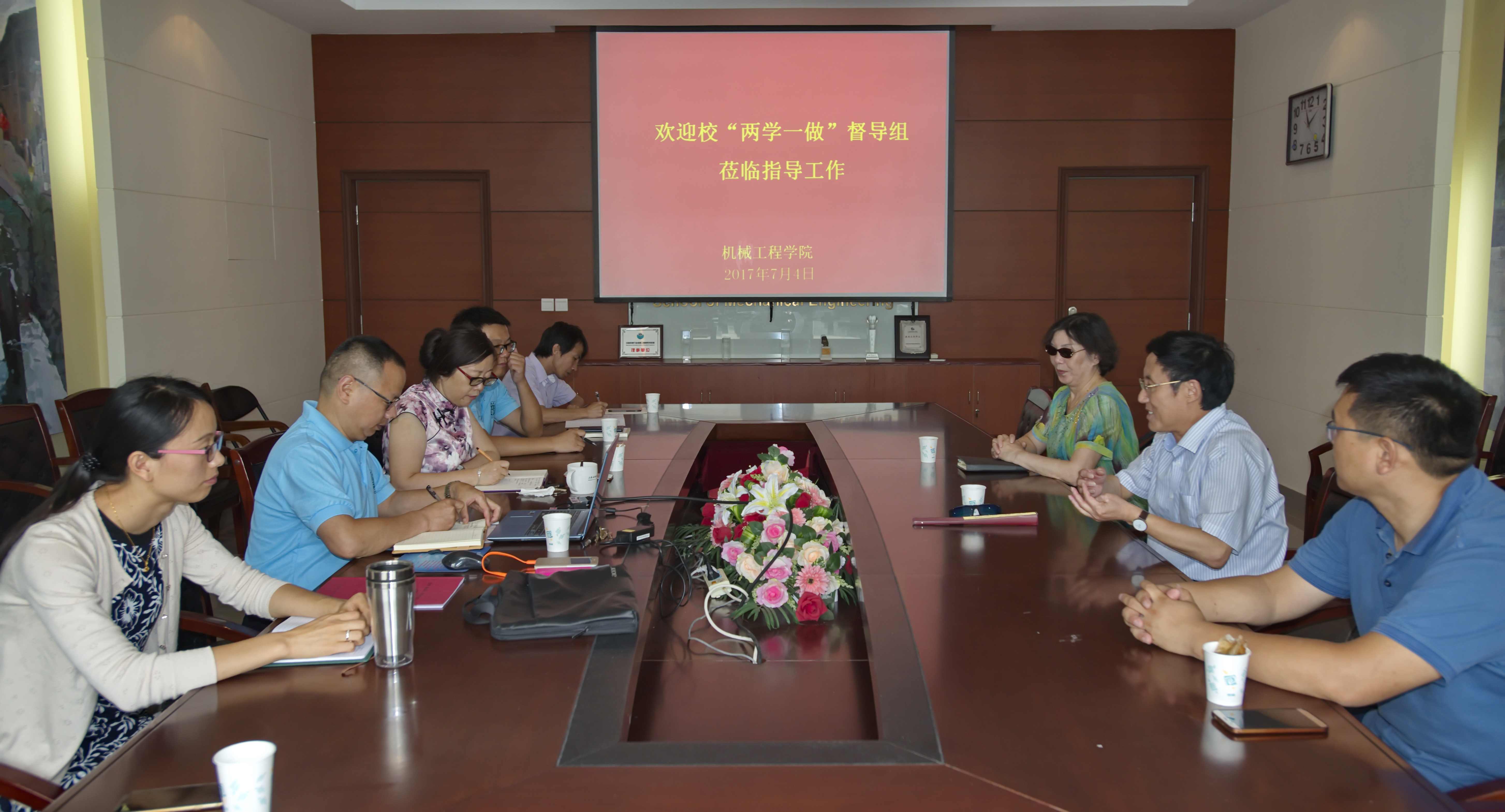 7月4日,机械工程学院召开“两学一做”学习教育常态化交流会,校“两学一做”第一督导组徐大纲组长、朱丽娟、贺坤,机械工程学院党政班子、总支委员和支部书记等参加。