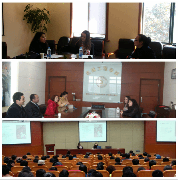 下午,电气学院党总支书记徐斌、机械工程学院院长张东民与Emily一行就两校进一步专业对接及合作进行了初步交流。随后,Emily在图书馆B101向机械学院、电气学院13级、14级中美合作班同学进行了面对面宣讲。Emily介绍了中密西根大学的整体教育情况、校园文化以及和我校的2+2合作项目,对CMU招生要求做了具体说明,并详细列举了申请CMU所需资料。本次宣讲会气氛活跃,在中外合作班同学们中引起了积极反响,宣讲会在同学们的掌声中圆满结束。会后有同学留下来与对方进行了互动。