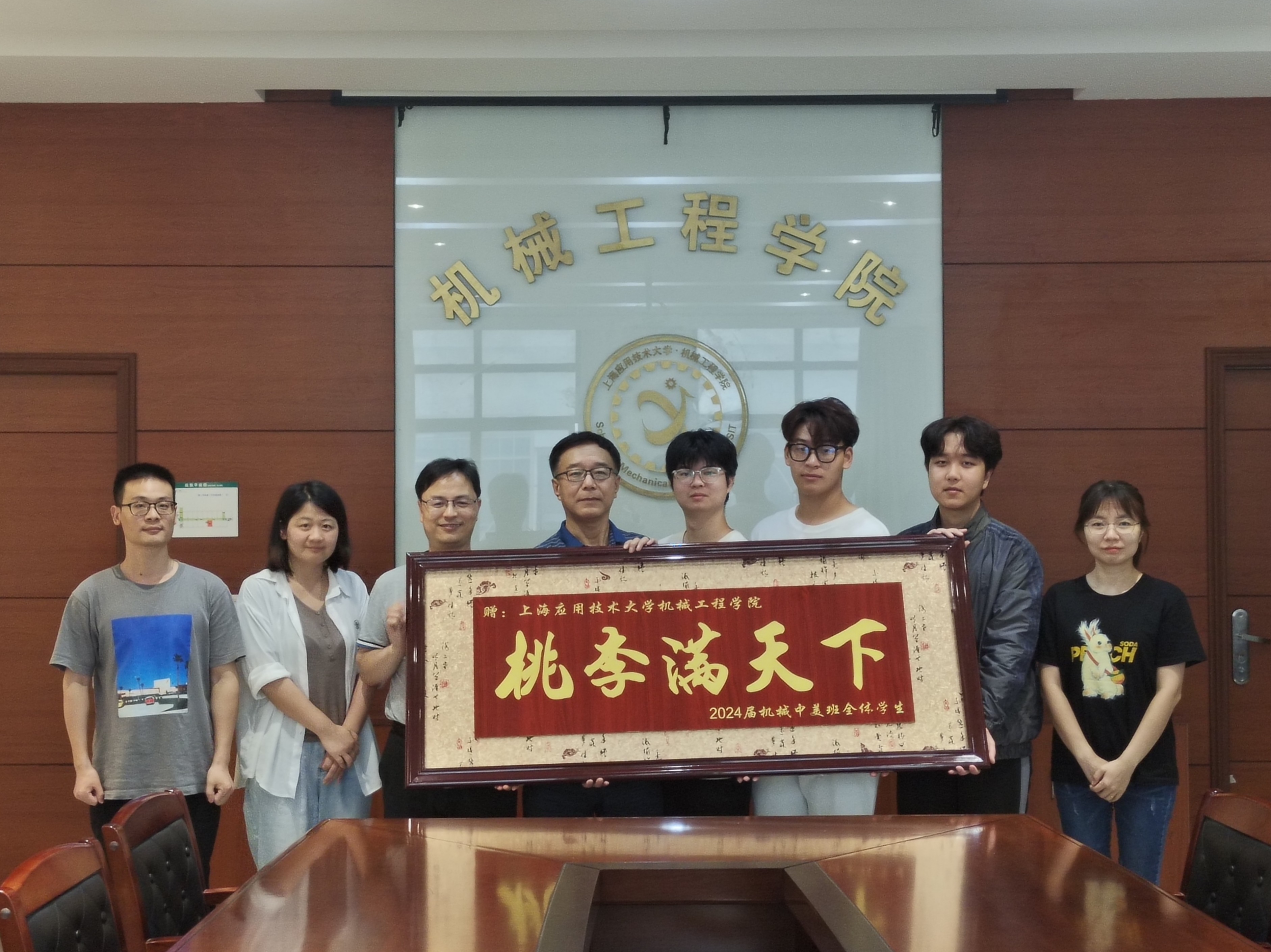 又到毕业时,师生别依依。6月28日,机械工程学院2024届机械设计制造及其自动化(中美合作)专业全体学生向学院赠送“桃李满天下”牌匾,对全院教师的辛勤付出表示诚挚感谢和最高敬意。机械工程学院副院长张珂代表学院接受学生赠送。