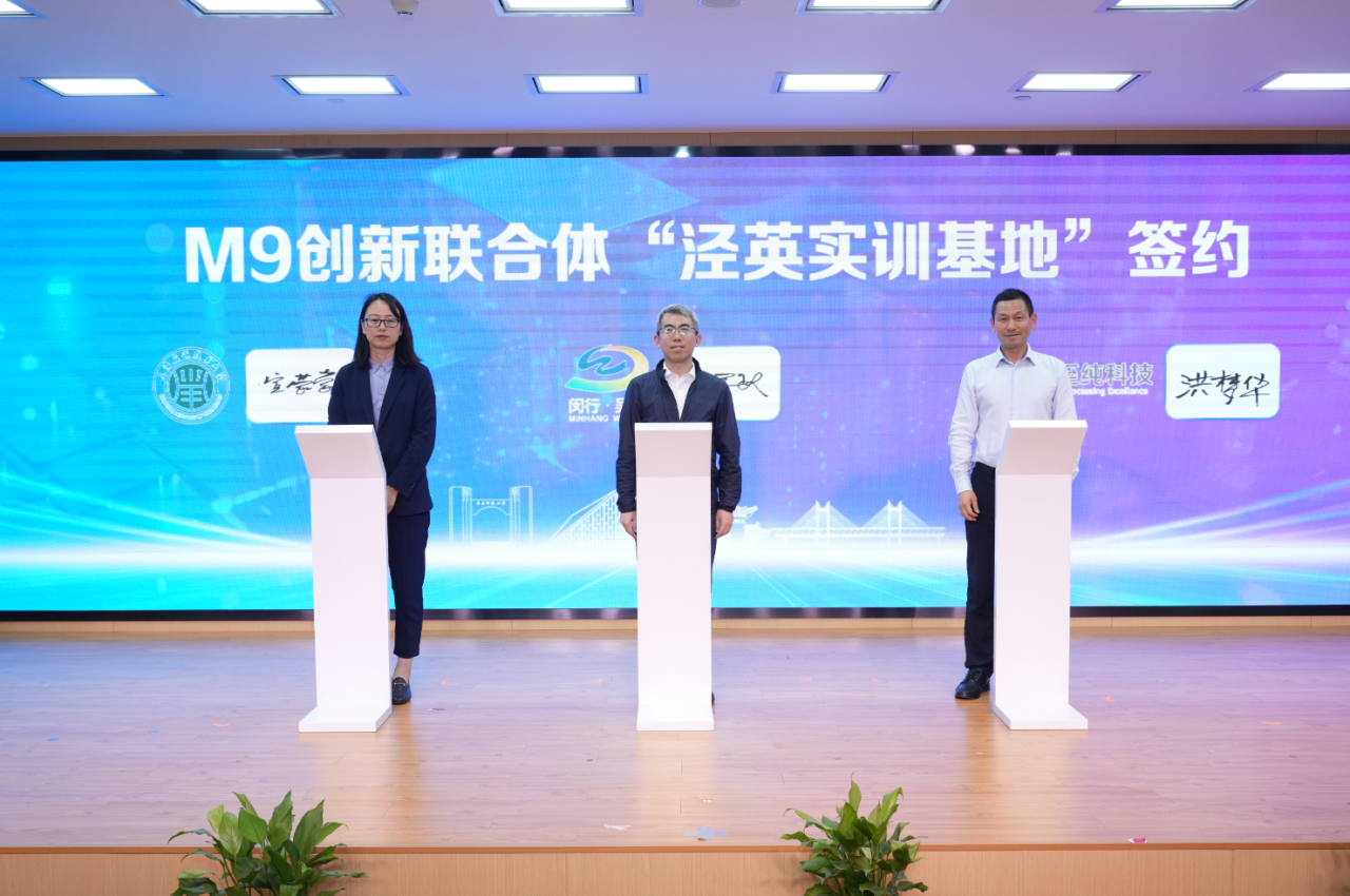 机械工程学院党委副书记、副院长宣蒙蒙在第二届“大零号湾”国际人才月——“三科之城”创新创业集思汇主题活动上与吴泾镇、至纯科技共同签订“泾英实训基地”合作备忘录,通过拓展校地校企联动新模式,持续发挥“M9创新联合体”协同作用,全面深化校地校企合作,为区域高质量发展赋能添力。