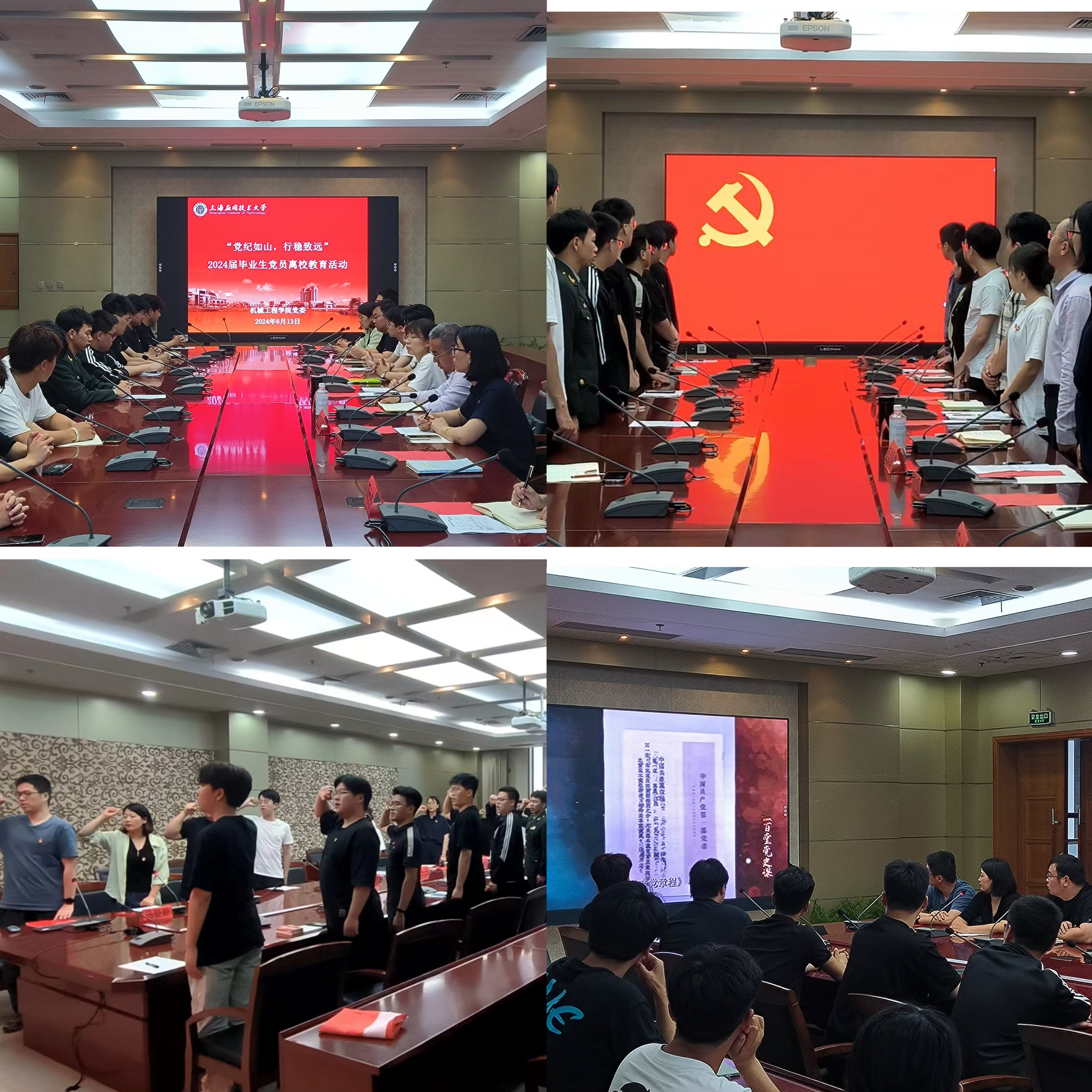 筑梦人生路,启航新征程。为持续推进党纪学习教育走深走实,引导广大毕业生党员坚定信念、胸怀祖国、脚踏实地、担当作为,做勇立新时代潮头的奋斗者,开启人生新篇章,6月13日下午,机械学院“党纪如山,行稳致远”2024届毕业生党员离校教育活动在图书馆B103隆重举行。机械学院党委书记杨瑞君和学院党委副书记、副院长宣蒙蒙出席,毕业生党支部书记、毕业生辅导员和全体毕业生党员齐聚一堂,共话新时代青年党员的责任与奉献、使命与担当。本次毕业生离校教育活动由学院党委组织员马轻轻主持。