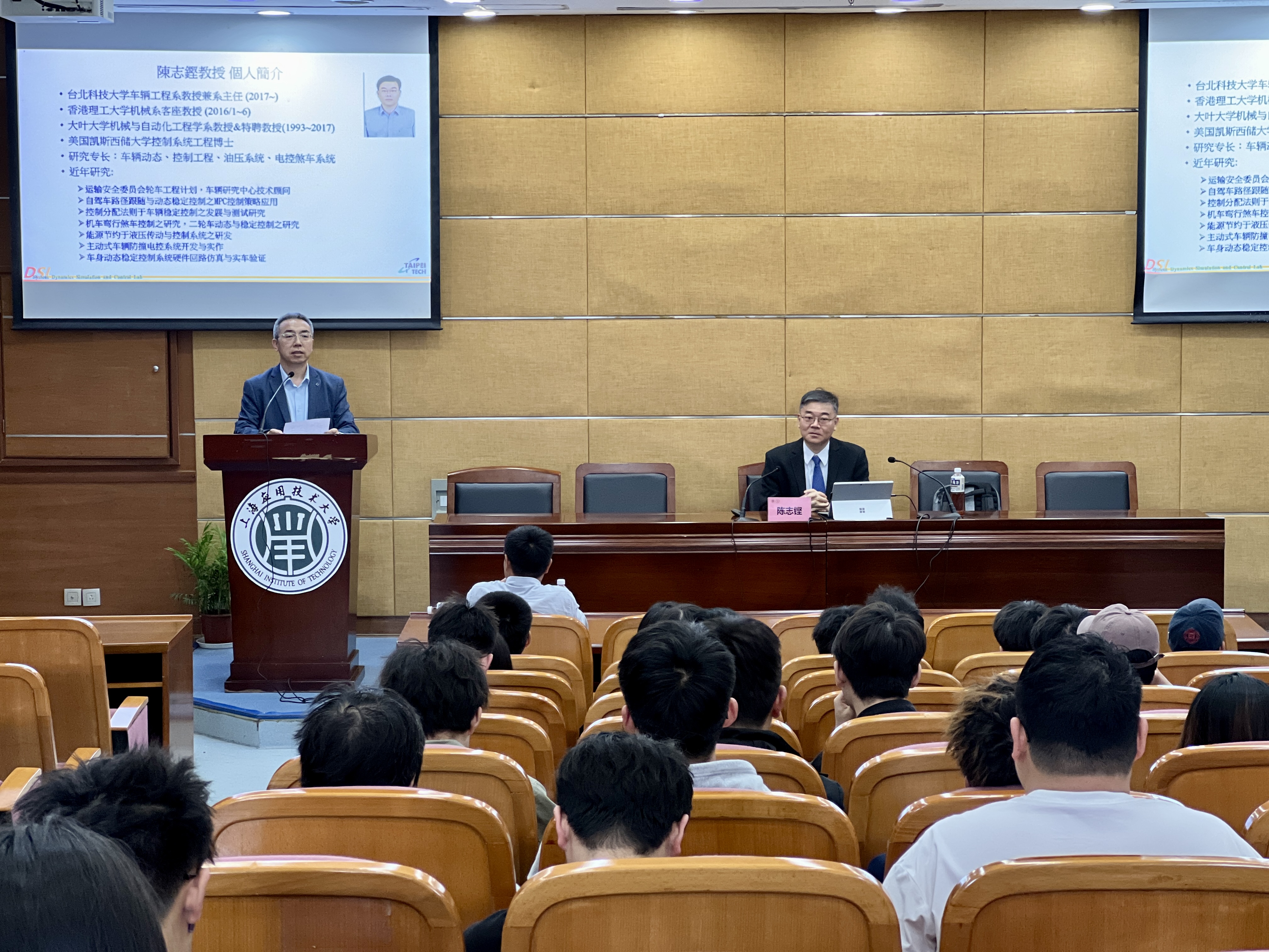 陈志铿教授于1993年毕业于美国凯斯西储大学控制系统工程专业,获得工学博士学位,先后担任台湾大叶大学教授、香港理工大学客座教授等,现为台北科技大学机电学院教授、车辆系主任,2010年受聘于我校首届海外名师,主要从事车辆动力学、无人驾驶以及车辆刹车系统等领域的研究工作,在国际知名期刊Sensors、Mechatronics等发表论文50多篇,担任多届国际车辆自动控制领域的学术会议主席,是国际知名的车辆控制专家。