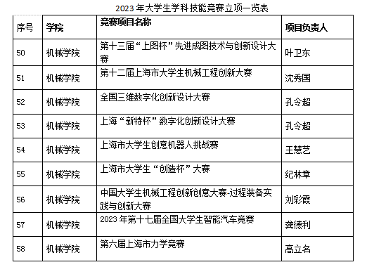 根据《上海应用技术大学大学生学科竞赛管理办法》(上应教〔2017〕69号),经学院申报,专家评审,机械学院9个竞赛项目成功立项。