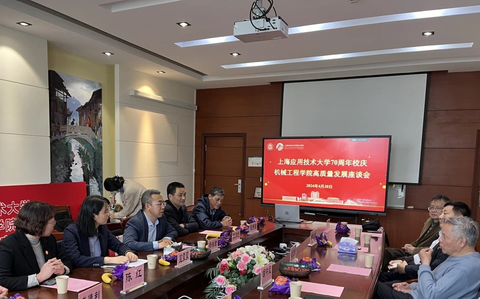 为深入学习贯彻习近平总书记关于发展新质生产力的重要论述和全国两会精神,聚焦科技创新赋能新质生产力推进应用型高校高质量发展,4月20日下午,在隆重庆祝上海应用技术大学建校70周年之际,机械工程学院举办了“机械工程学院高质量发展座谈会”。出席会议的有原第二工业大学副校长瞿志豪、原教务处处长胡大超教授、校党委特邀组织员薛纭教授等退休教授、振华集团港机重工有限公司董事长胡中望等知名校友、机械工程学院党委书记杨瑞君、人文学院党总支书记周文、高职学院院长张东民、离退休党委书记陈红,以及骨干教授、青年教师代表等,会议由机械工程学院党委副书记、副院长宣蒙蒙主持。