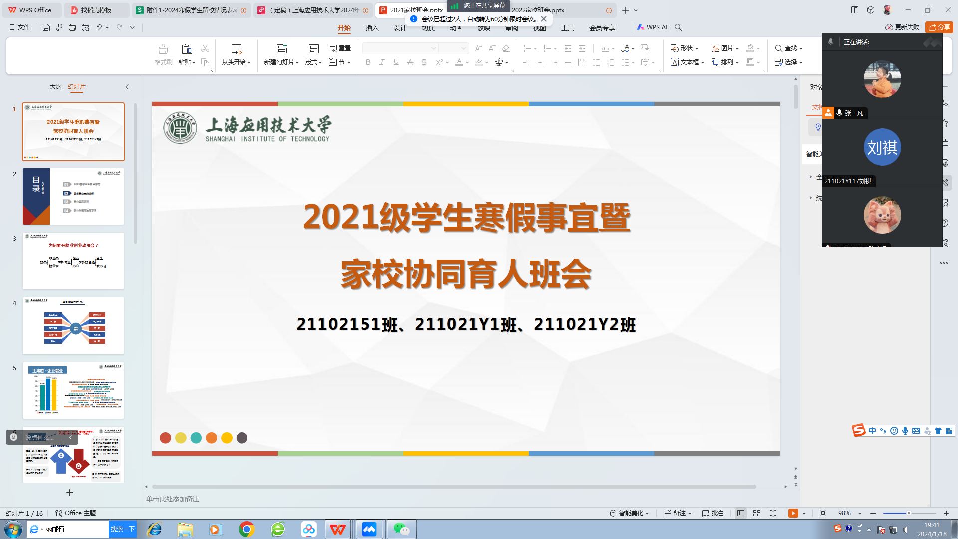 会上,每位辅导员老师均从为什么要召开家校协同会、家长如何做好家校协同两个方面讲解了家校协同育人的重要性,根据不同年级的特点分别对学生生命安全、心理健康、学业情况、毕业条件、就业去向等方面作了更深层次的分析,同时学院领导强调学生和家长一是要注重毕业前的环节和细节,任何一个环节都不能马虎;二是要及时做好家校沟通,进一步强化家校协同,为了孩子们的未来共同努力;三是要勇于面对新的困难和问题,尽早解决;四是要时刻关注孩子的心理健康,确保孩子健康成长。