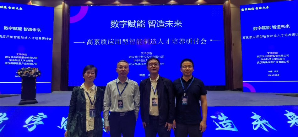 10月27日至31日,由华中科技大学出版社、武汉华中数控股份有限公司联合主办,文华学院和武汉高德信息产业有限公司承办的“数字赋能、智造未来——高素质应用型智能制造人才培养研讨会”在湖北武汉召开。本次研讨会汇聚了来自全国各地的智能制造领域专家、学者和业界代表,旨在探讨应用型高校智能制造人才培养的最新趋势和最佳实践。机械工程学院党委书记杨瑞君、副院长张珂、机制系主任徐轶、智能制造系主任王兴华老师参与了本次研讨会。