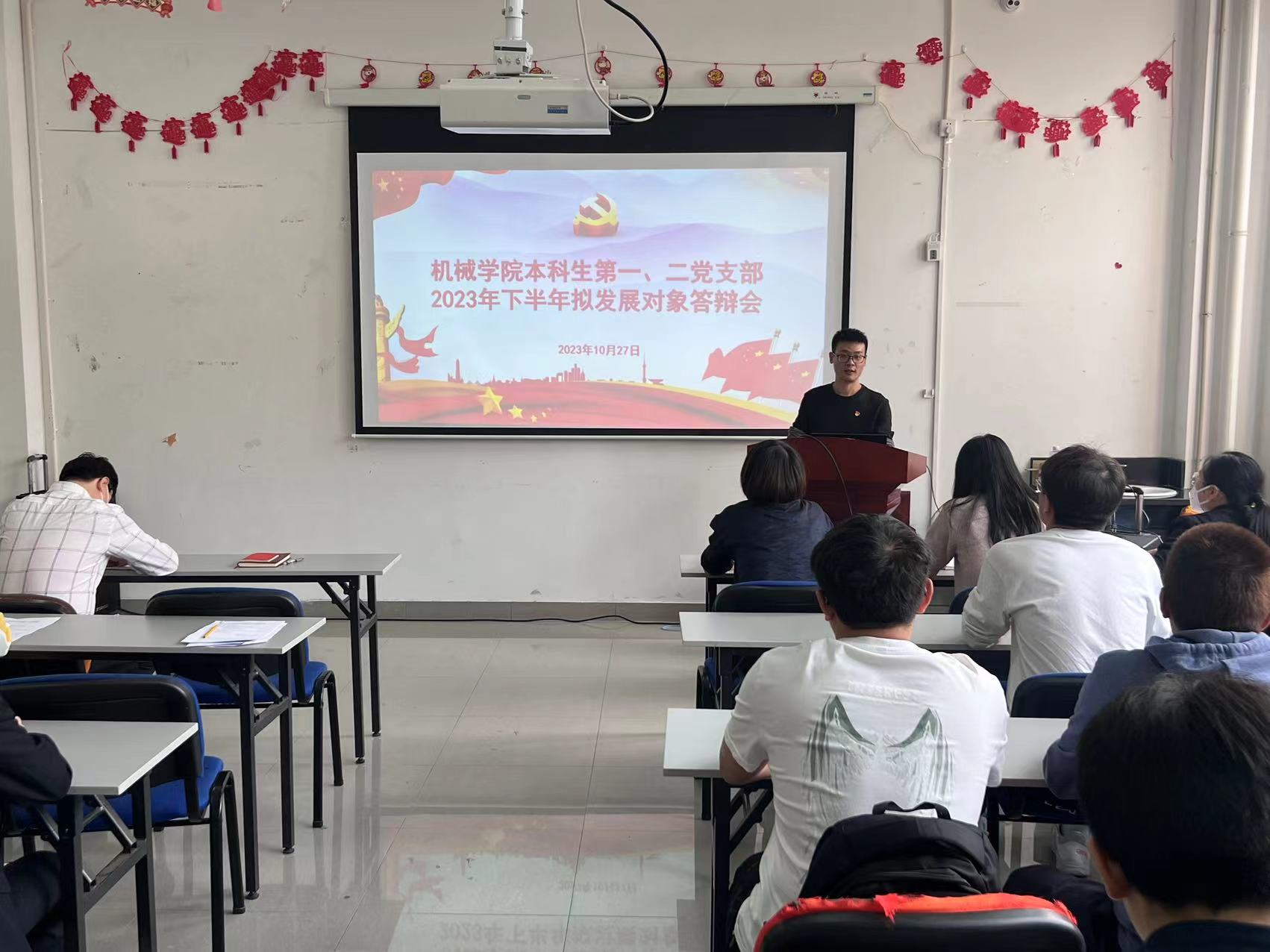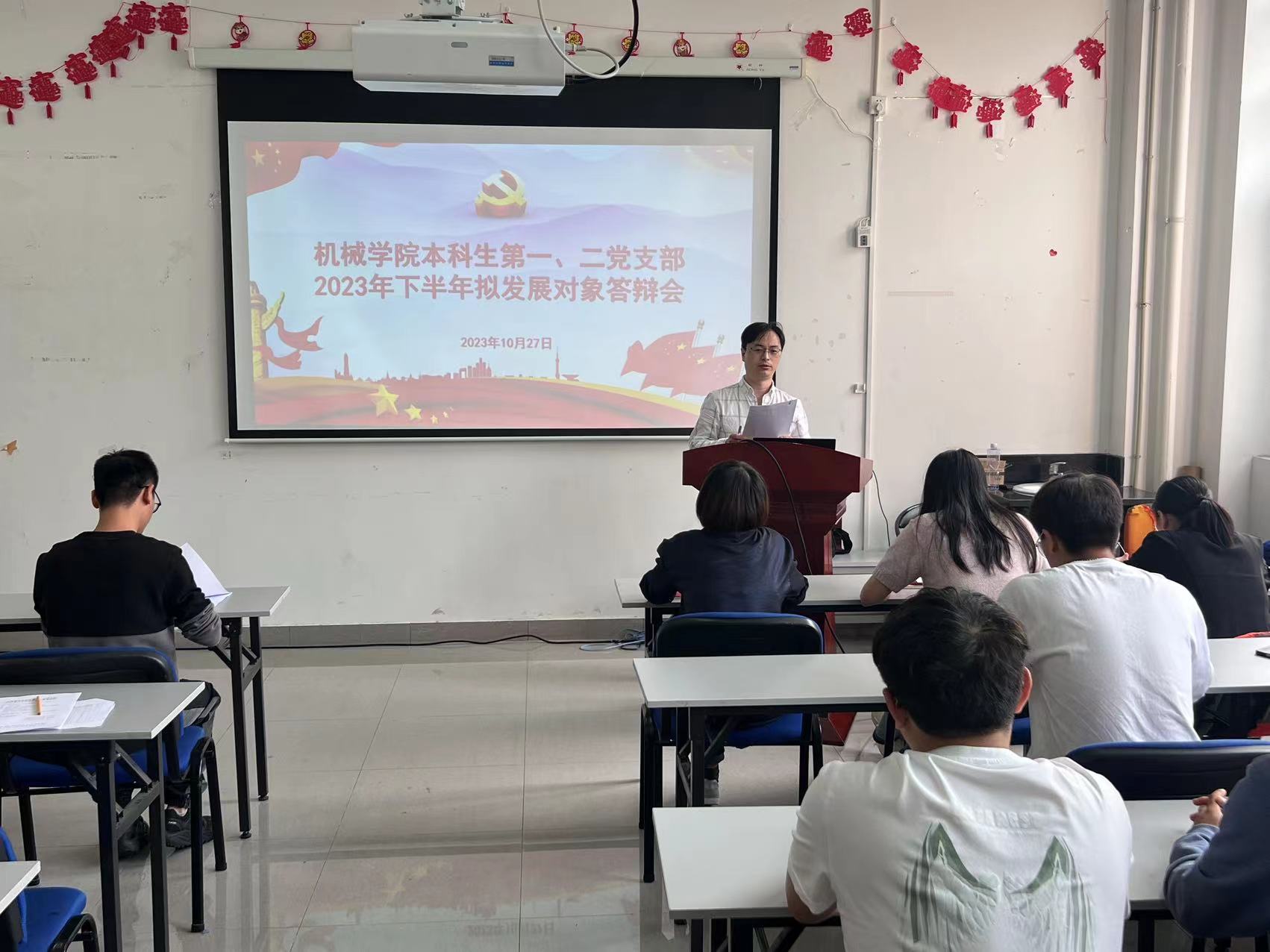 10月27日,机械工程学院本科生第一党支部、第二党支部联合举行2023年下半年拟发展对象答辩会。机械工程学院专职组织员马轻轻到会指导,各党支部书记、辅导员老师代表、支部党员代表、班干及学生代表、入党积极分子等20余人参会。