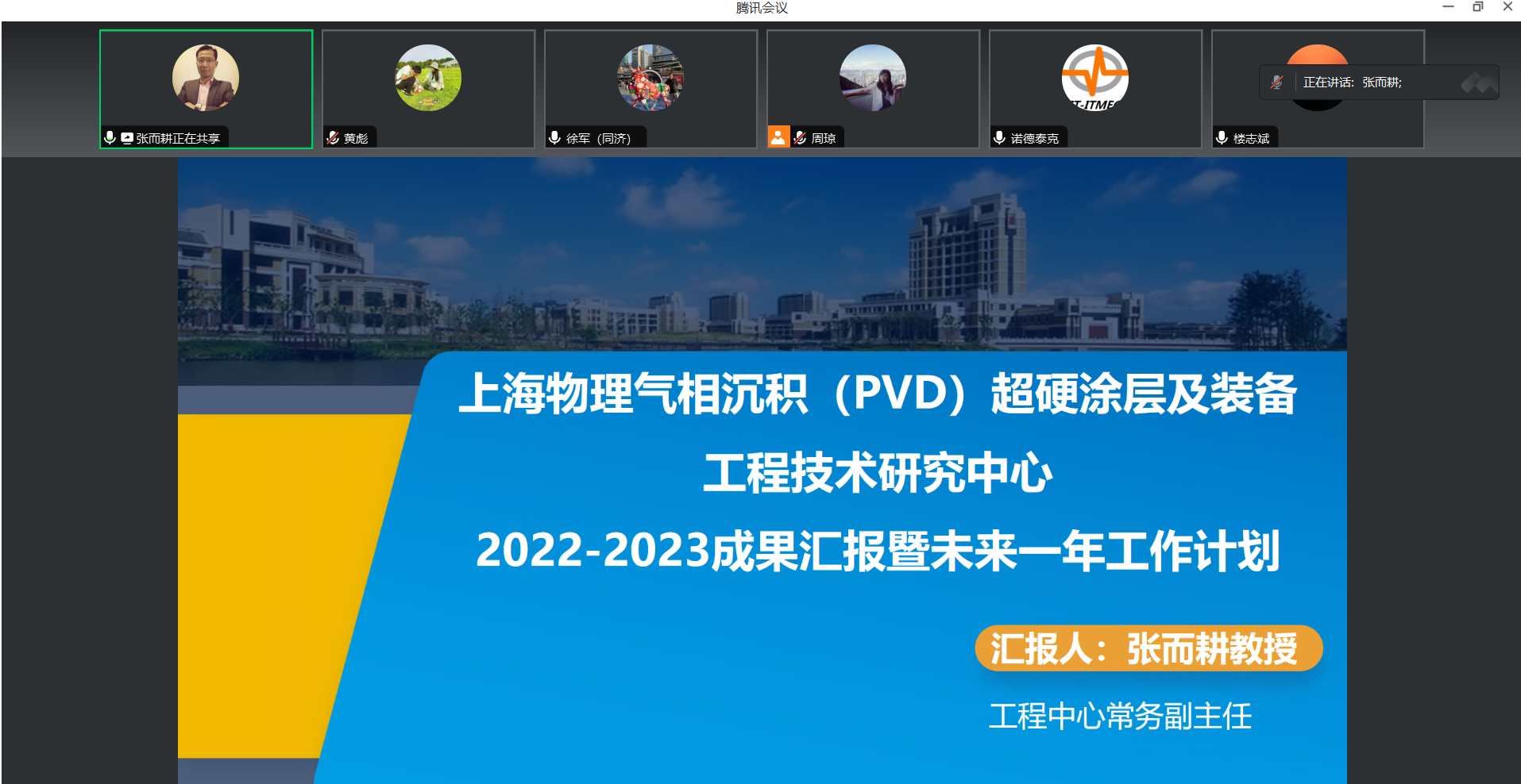 中心主任张锁怀教授总结并回应专家意见,并指出,上海物理气相沉积(PVD)超硬涂层及装备工程技术研究中心这一年在涂层装备技术的研发方面有较大进展,部分关键零部件已实现国产化,科研项目、论文和专利、获奖等方面也取得了较好的成绩,未来中心的建设将继续以引领行业进步为目标,进一步提升PVD涂层技术、涂层装备技术的研发,进一步加强人员队伍建设,产学研合作和涂层市场化尝试,往更高层次发展,从而推动高端制造业、航空航天、医疗器械等行业持续高效发展。