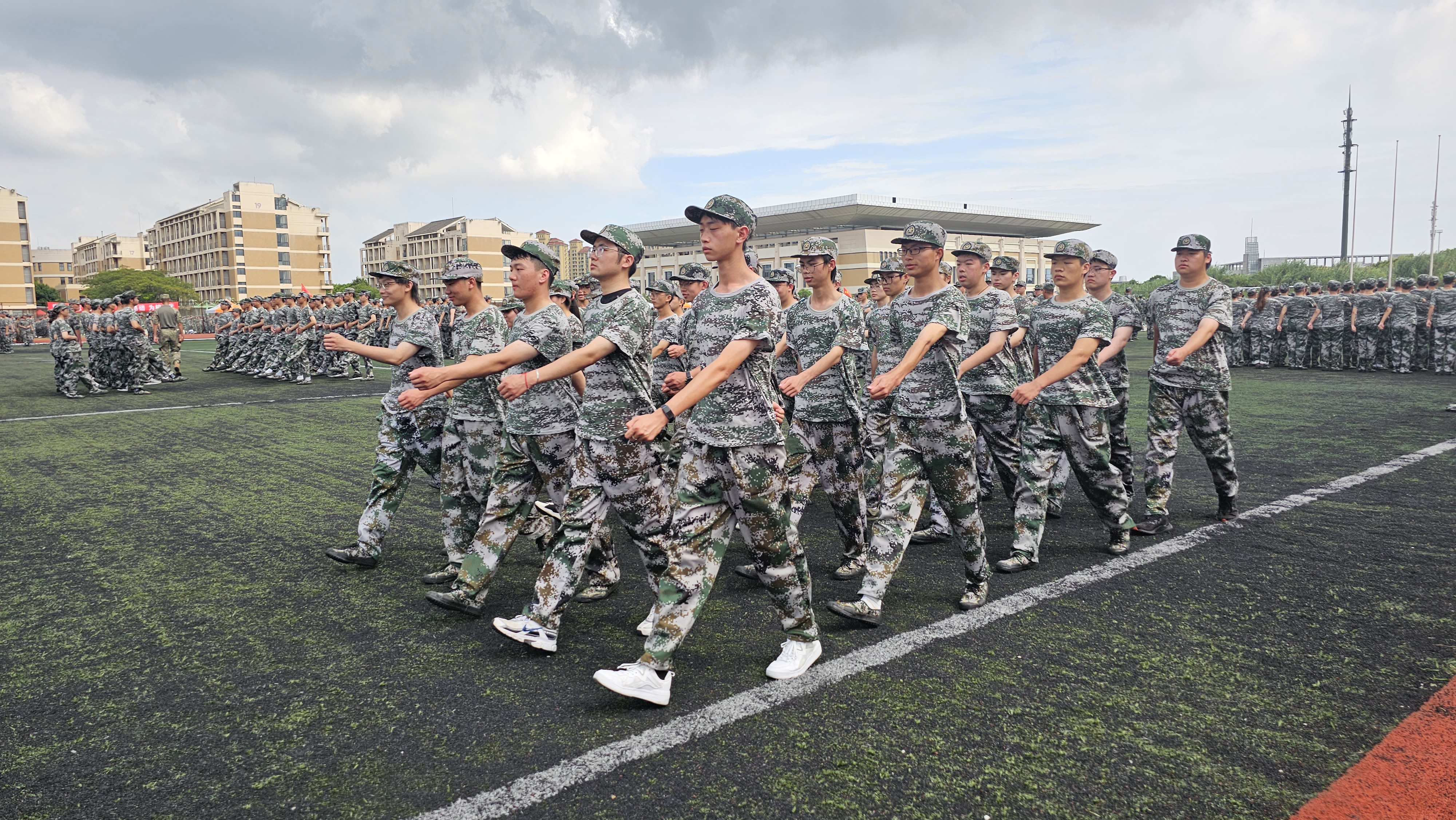 伴随着分列式正式开始号令的发出,机械工程学院军训连组成的方队在军乐声中,踏着整齐的步伐依次经过主席台,展示军训成果。在军训的十三天里,烈日考验着人的意志,但2022级本科生在军训的熔炉中,实现了自己的蜕变。本次军事训练的内容涉及队列、方队、军体拳、匕首操、内务整理等项目。