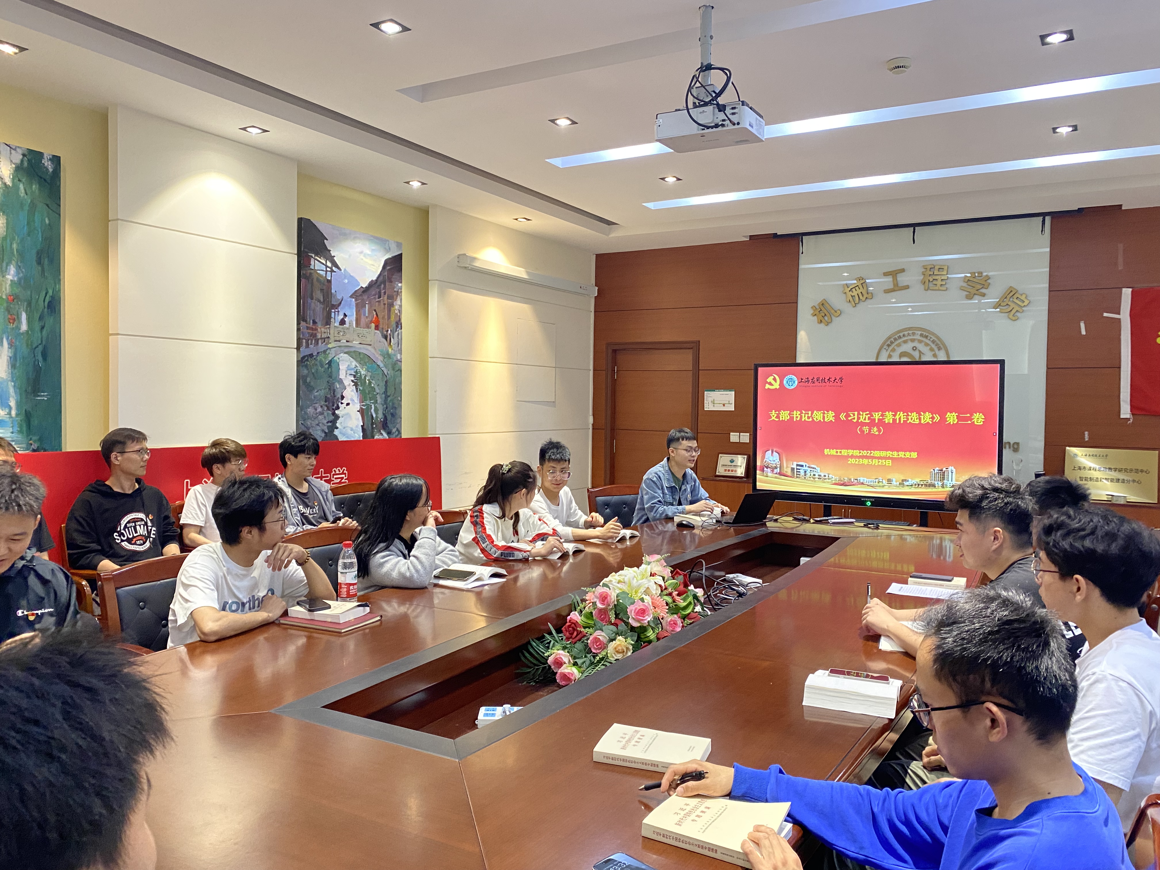 为进一步深入学习贯彻习近平新时代中国特色社会主义思想主题教育,推动支部党员提高理论水平,机械工程学院2022级研究生党支部于2023年5月25日在第一学科楼A324组织进行理论学习活动,活动由叶佳庆同志主持。活动的主要内容包括支部书记领读《习近平著作选读》(第二卷),以及有关人员领读《习近平新时代中国特色社会主义思想专题摘编》和领学二十大报告。