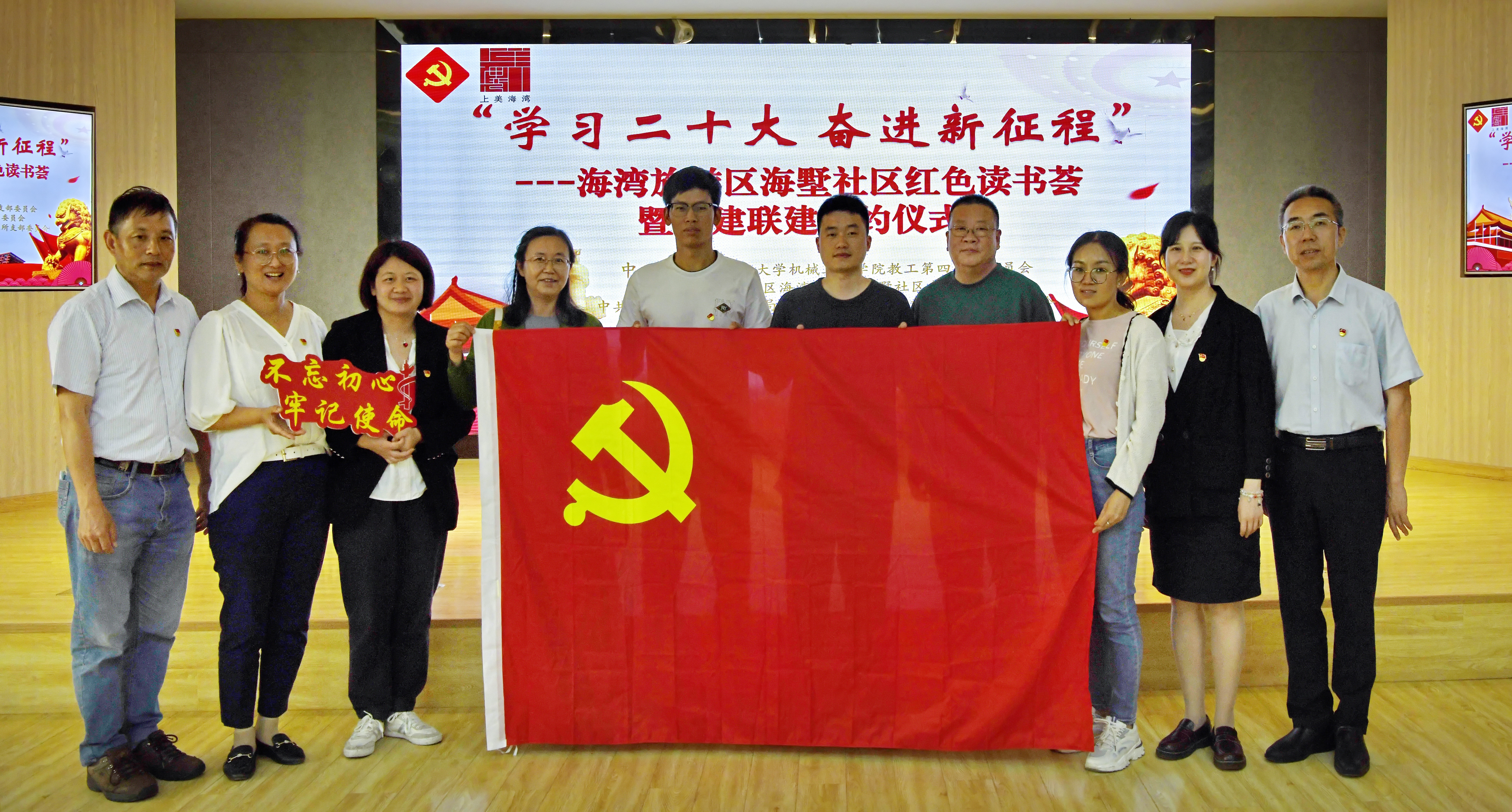 2023年是全面贯彻落实党的二十大精神的开局之年,为深入开展学习贯彻习近平新时代中国特色社会主义思想主题教育,庆祝中国共产党成立102周年来临之际,6月6日下午,上海应用技术大学机械工程学院党委、海湾旅游区海墅社区居委会党支部及海湾旅游区市场监督管理所党支部共同开展红色读书荟暨党建联建签约仪式,开展了联学共建活动,推动党建与业务工作融合,为我院高质量发展提供坚强组织保障。学院党委书记杨瑞君,海湾旅游区党工委副书记张平,机械学院教工第四党支部、海湾旅游区市场监督管理所党支部和海墅社区党支部的党员代表,共40余人参加此次活动。