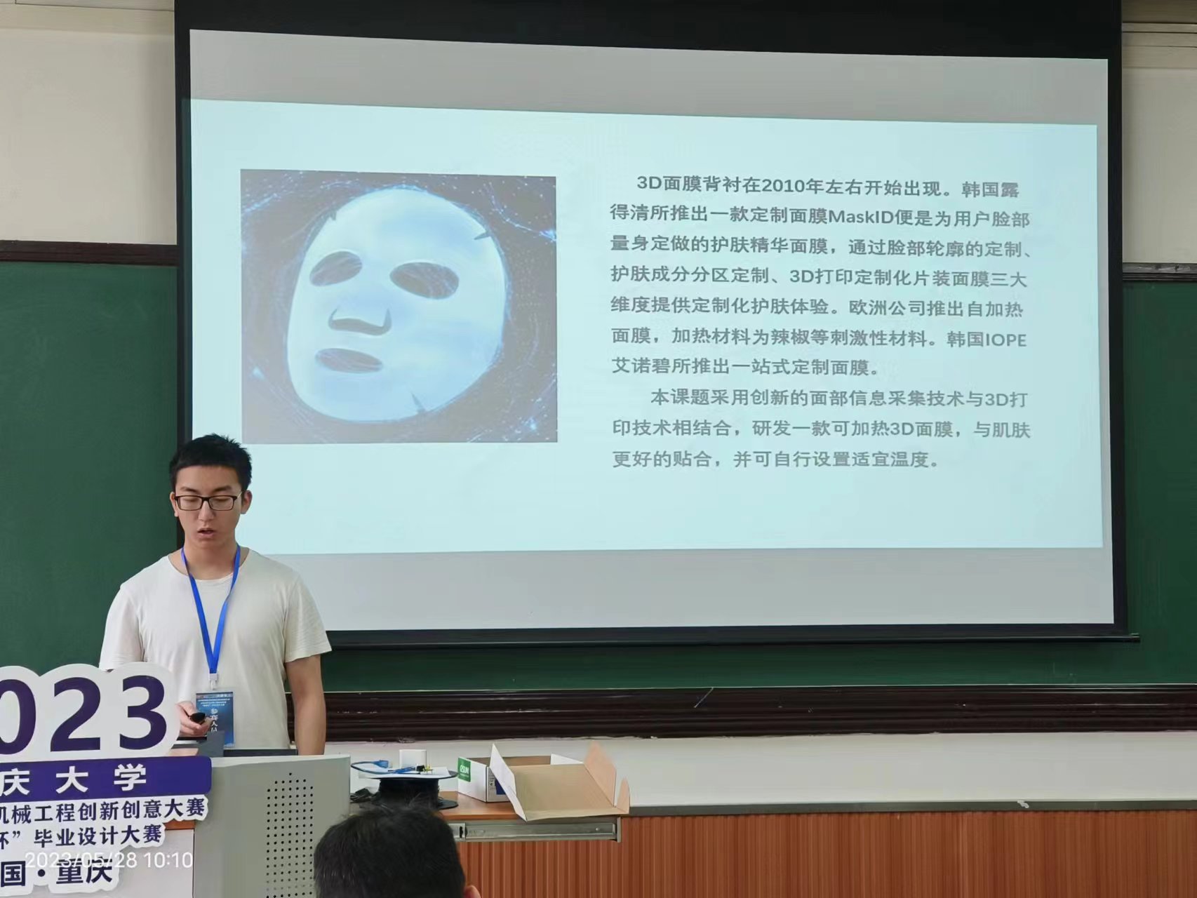 参赛题目为“3D可加热面膜的研发与制备”,不仅是校企合作课题,也是跨专业跨学科团队合作项目。本课题采用创新的面部信息采集技术与3D打印技术相结合,研发了一款可加热3D面膜,与肌肤更好的贴合,并可自行设置适宜温度。团队有两名指导教师,三名学生。学校指导教师为褚忠,企业导师为“上海存知光电科技有限公司”总经理吴兴农,学生有朱邵俊,负责“导电3D打印丝材制备”子项目;李龙洋负责3D面膜背衬制备子项目;李博巍负责水凝胶面膜3D打印机设计子项目。