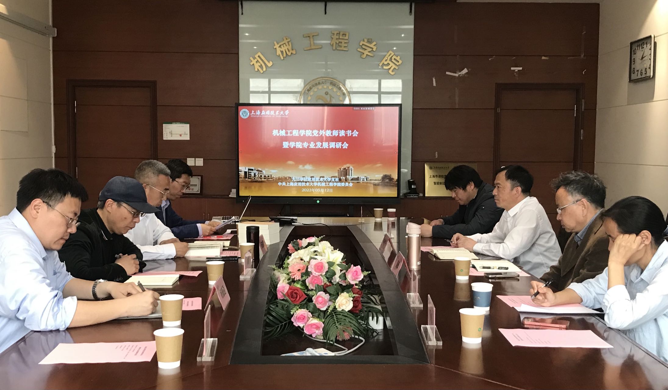 为深入学习贯彻党的二十大精神,5月12日,机械学院举行党外教师读书会暨学院专业发展调研会。校党委统战部副部长于有进、学校主题教育巡回指导组第二组组长薛纭教授应邀出席,机械工程学院党委书记杨瑞君、副院长郑刚、党外教师参加会议。校九三学社副主委唐有绮主持会议。杨瑞君领学《习近平著作选读》中的《全过程人民民主是最广泛、最真实、最管用的社会主义民主》和《把人民政协制度坚持好,把人民政协事业发展好》。唐有绮领学《三问“各民主党派、无党派人士和党外知识分子、新的社会阶层人士主题教育”》。郑刚介绍近几年来学院的专业建设情况,同时也指出了学院的专业建设面临着一些发展中的堵点问题。