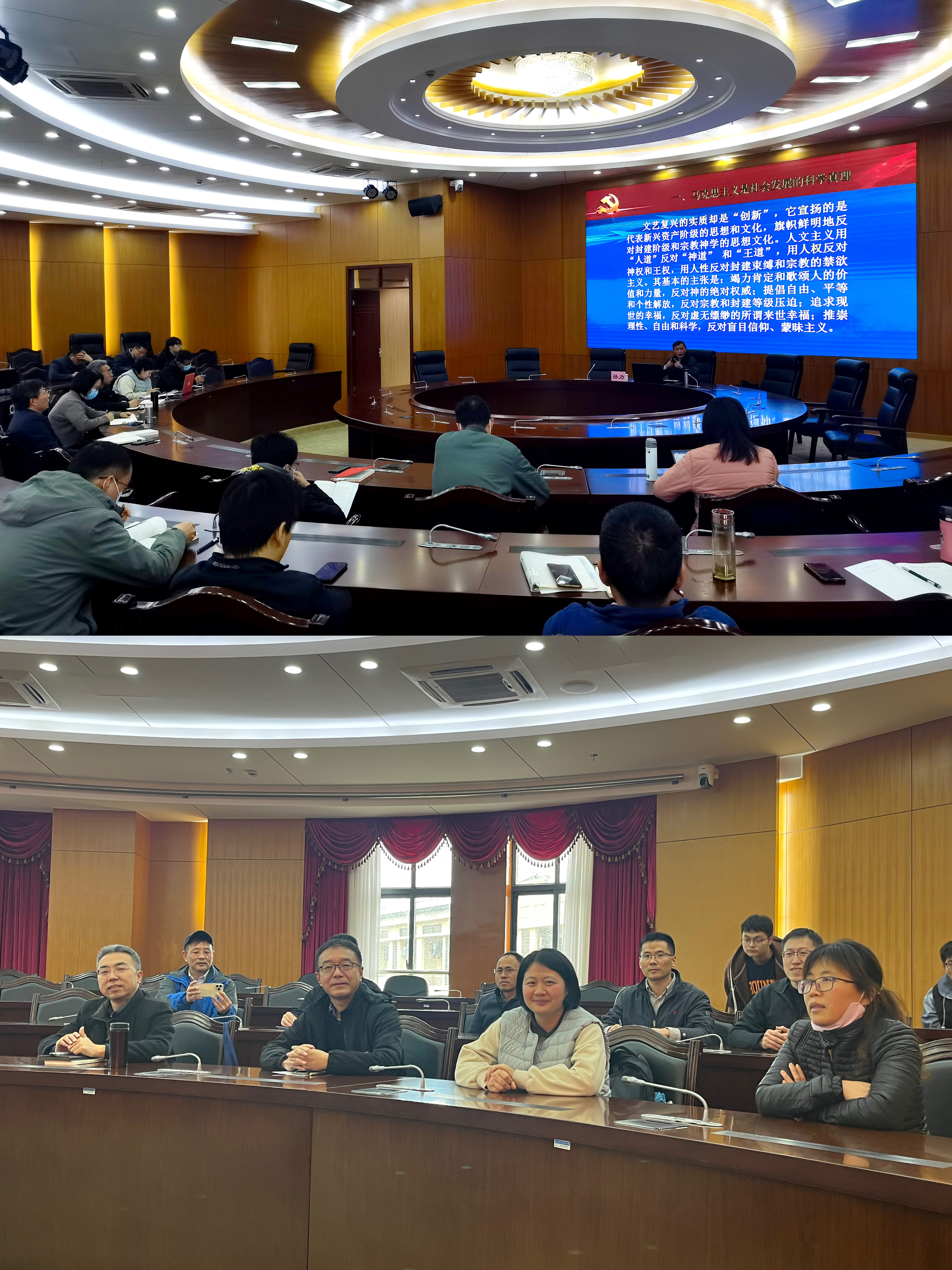我院党委理论学习中心组全体成员在听取报告后进行了内部交流,与会同志表示,通过聆听宣讲报告,深刻认识到学习宣传贯彻党的二十大精神的重大意义,要全面学习、全面把握、全面落实党的二十大精神,全面贯彻党的教育方针,落实立德树人根本任务。学院也将主动对标党的二十大报告提出的各项任务部署,坚持往深里学,往实里学,找准结合点和切入点,列出具体举措,把党的二十大精神落实到各项具体工作和实际行动中。