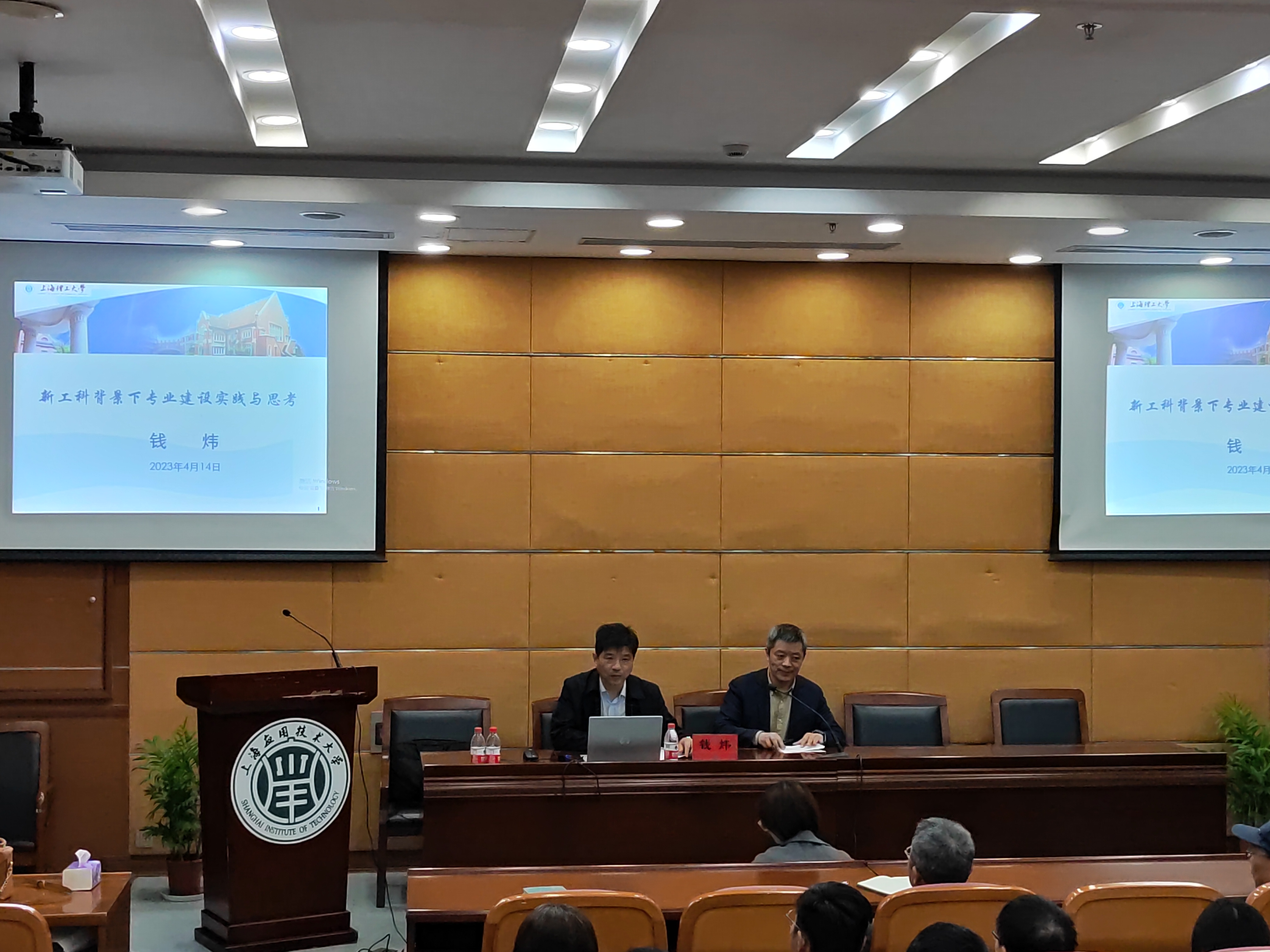 为迎接“学校69周年校庆”,促进“智能制造和智能建造课程思政分中心”建设,2023年4月14日,机械工程学院联合城市建设与安全工程学院,邀请上海理工大学机械工程学院教学院长钱炜作专题报告,会前学校党委副书记陈海瑾会见了钱炜院长。城建学院院长丁文胜主持会议,机械学院党委书记杨瑞君、教学院长郑刚、城建学院教学院长武田艳出席会议,两个学院90余名师生参会。