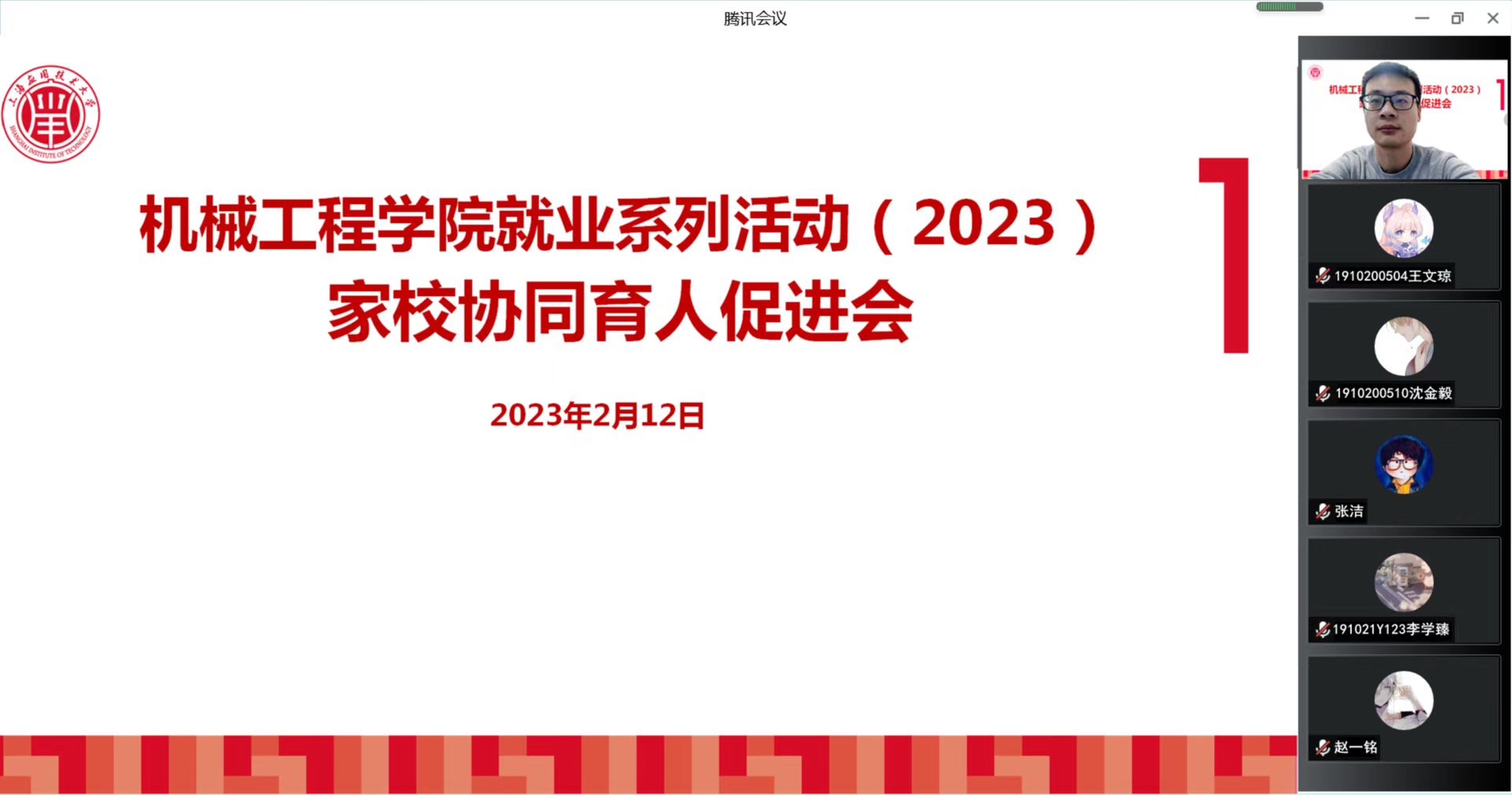 2月12日,机械工程学院组织开展2023年第一场就业促进系列活动,2019级过控、中美、卓越专业召开家校协育人促进会。机械工程学院党委书记杨瑞君,2019级过控、中美、卓越专业全体学生及家长共计200余人参会。