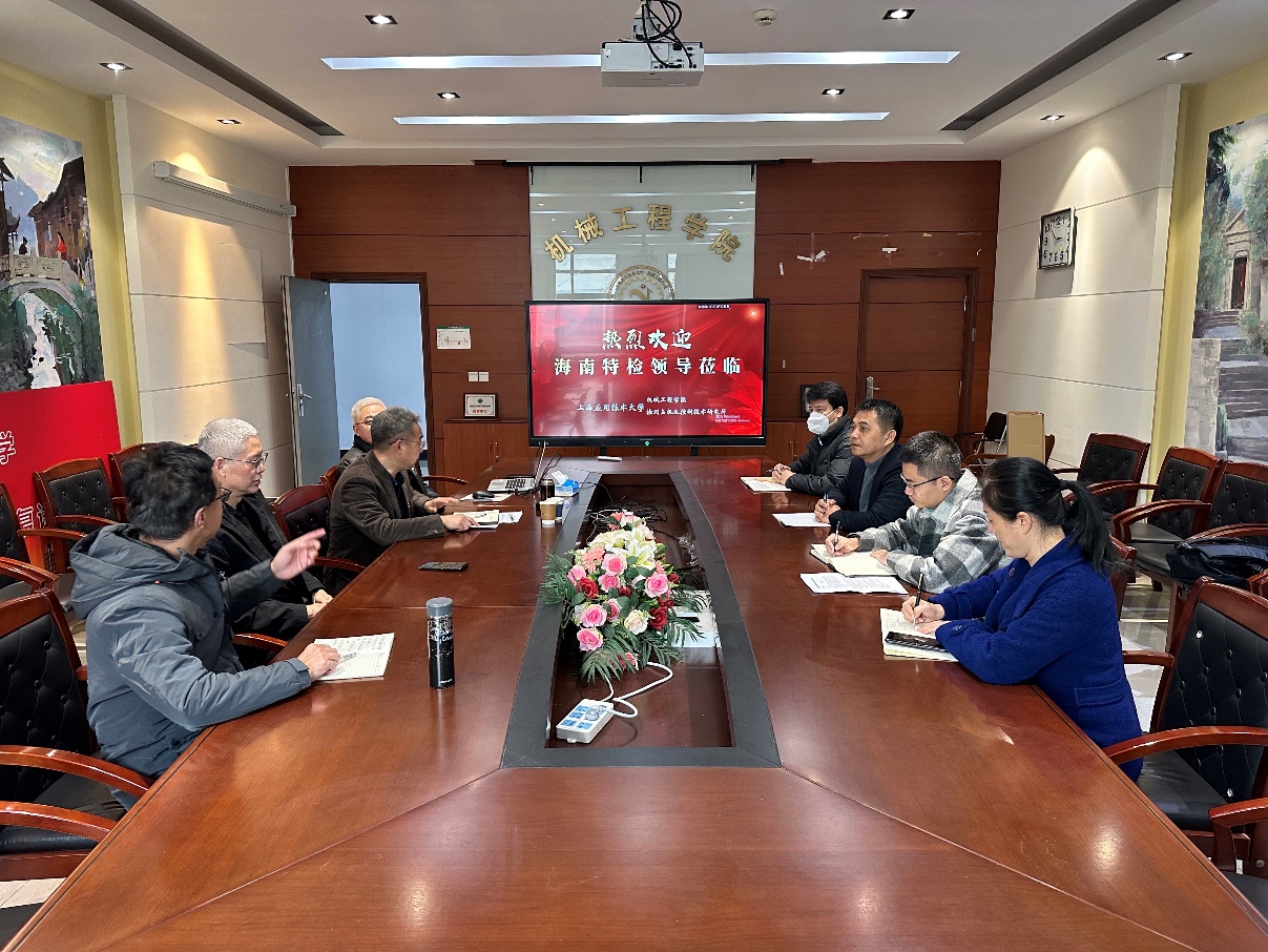 2023年2月14日下午,海南省锅炉压力容器与特种设备检验所总工程师张勇等一行4人到访机械工程学院,双方在第一学科楼A324举行了洽谈交流。上海应用技术大学机械工程学科带头人张锁怀教授、机械工程学院党委书记杨瑞君、副院长张珂、过程装备与控制工程专业责任教授侯怀书等出席。