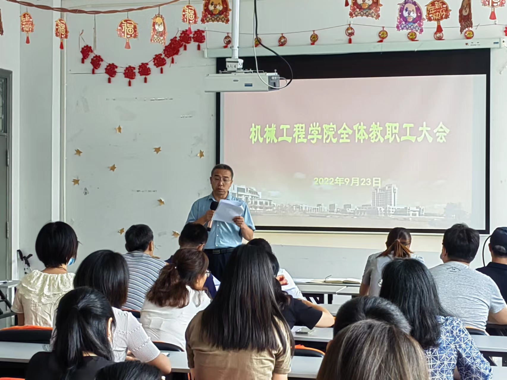 9月23日,机械工程学院召开新学期工作部署会议,学院全体教职员工参加,会议由党委书记杨瑞君主持,各分管领导从学科建设、教学运行、学生管理、工会工作等方面部署了新学期的任务和具体要求。