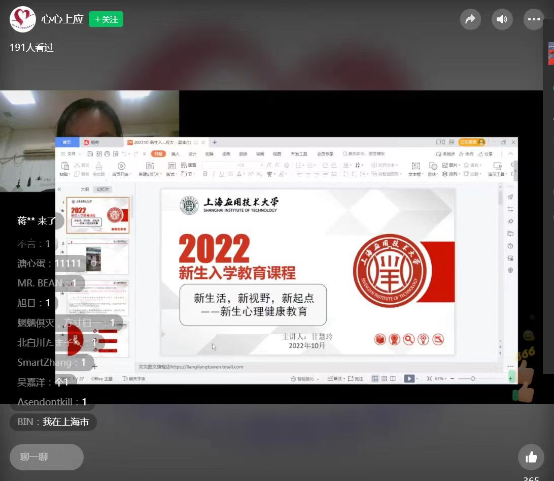 为进一步引导新生适应大学生活,普及心理健康知识,提高大学生心理素质和心理健康水平。10月10日晚18:00,机械工程学院“阳光心语”心理辅导站组织学生开展了“新生活,新视野,新起点”——2022级新生心理健康教育讲座。本次讲座由校学生工作部(处)心理健康教育中心甘慧玲老师主讲,覆盖机械工程学院全体2022级新生。