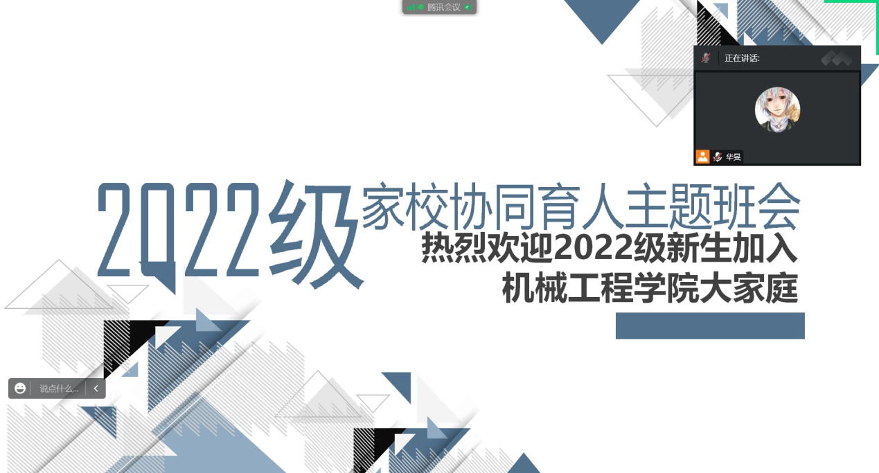 10月7日晚上6点,机械工程学院召开2022级新生线上主题班会暨“疫情下的积极安排和自我成长”主题线上家长会,机械工程学院专职辅导员华旻、兼职辅导员王广涛,以及300余名学生及家长参加了此次线上会议。