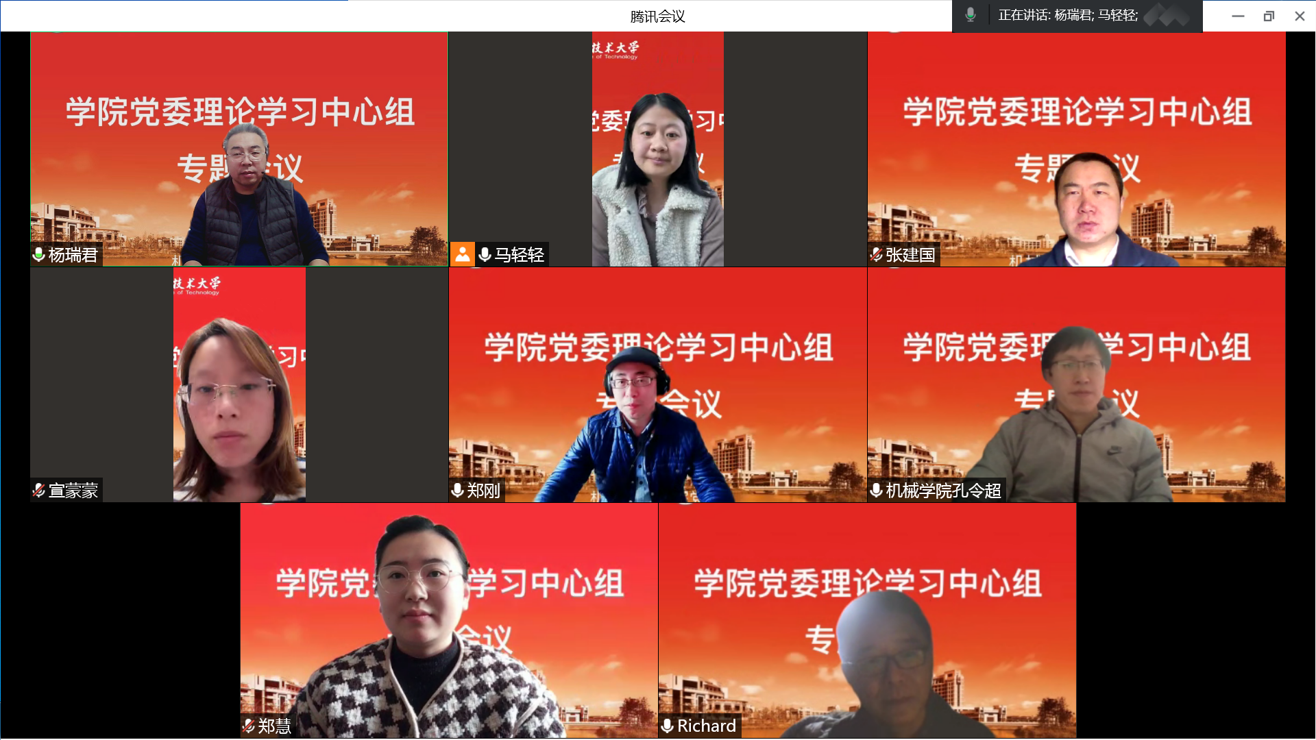 4月20日上午,学院党委中心组以新冠肺炎疫情防控为专题,举行2022年第三次集体学习,认真学习习近平总书记重要指示精神以及党中央的重大决策部署,坚持“动态清零”总方针不犹豫不动摇,进一步统一思想,增强打赢疫情防控阻击战的信心和决心,贯彻落实市委、市政府、教育部和市教卫工作党委、市教委关于学校疫情防控工作部署要求,统筹规划下一步疫情防控和学院发展工作,携手并肩,攻克时艰。党委中心组全体成员参加学习。