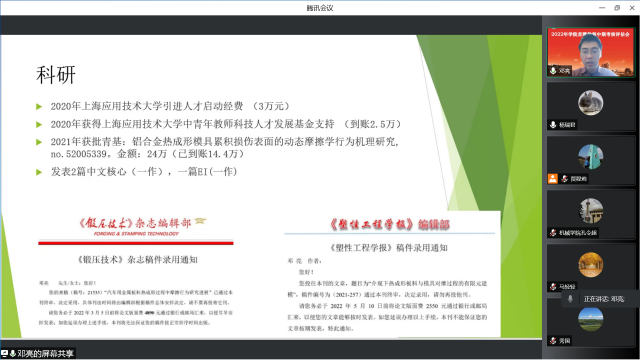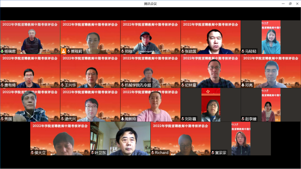 2022年4月21日下午机械学院在线召开2022年度教师首聘中期考核评估会议。学院考核聘任委员会成员参加了会议,会议由学院书记杨瑞君主持。