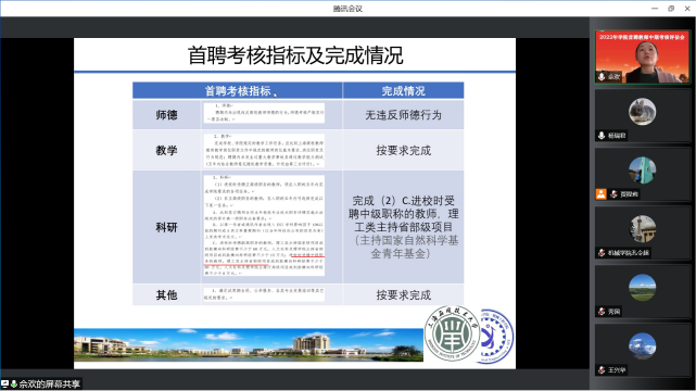 最后,考核委员会成员对照首聘教师汇报的相关资料,讨论决定了对以上5位教师首聘中期考核的结果。