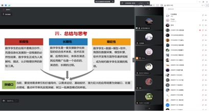 讲座开始,张珂老师为我们介绍了数字孪生的发展态势。老师从“数字孪生正成为全球信息技术发展的新焦点”、“数字孪生正成为跨国企业布局的新方向”、“数字孪生正成为主要国家数字化转型的新抓手”和我们进行了分享,老师生动的引入也成功激起了同学们的兴趣。