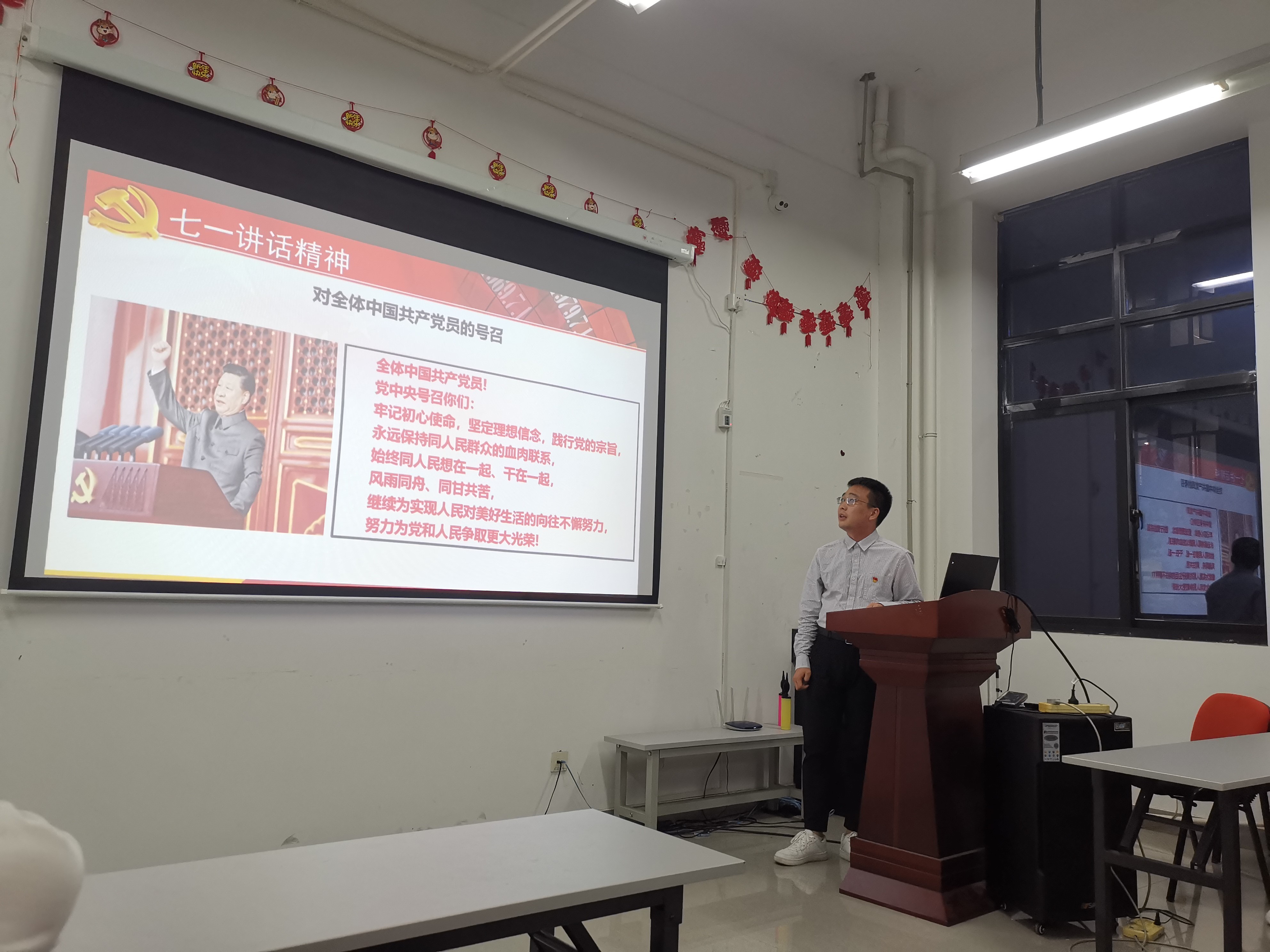 机械工程学院党委组织2021级新生党史学习暨入党启蒙宣讲,9月23日18:00,由黄道宇任组长,蒋慧敏、胡超群为组员的机械学院党史学习宣讲十队于上海应用技术大学第一学科楼A301举行了研究生2160911班的宣讲。组长黄道宇主持了本次宣讲,全体2021级机械电子工程、机械制造及其自动化和机械设计及理论三个专业的研究生新生参加了本次宣讲会。