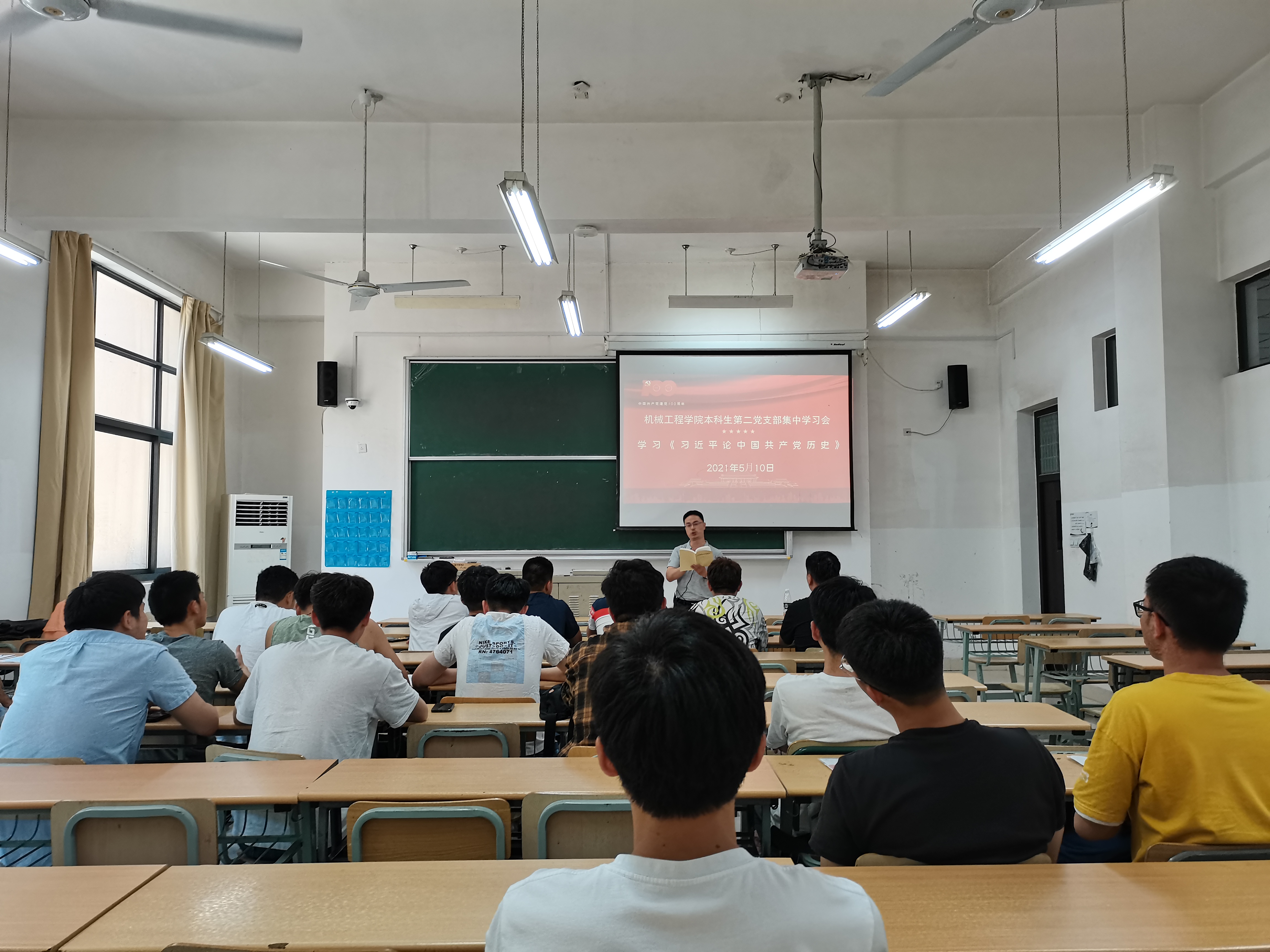 5月10日,机械工程学院本科生第二党支部集中学习《习近平论中国共产党历史》有关章节,此次集中学习由支部书记刘红星领学,支部全体成员参加集中学习。