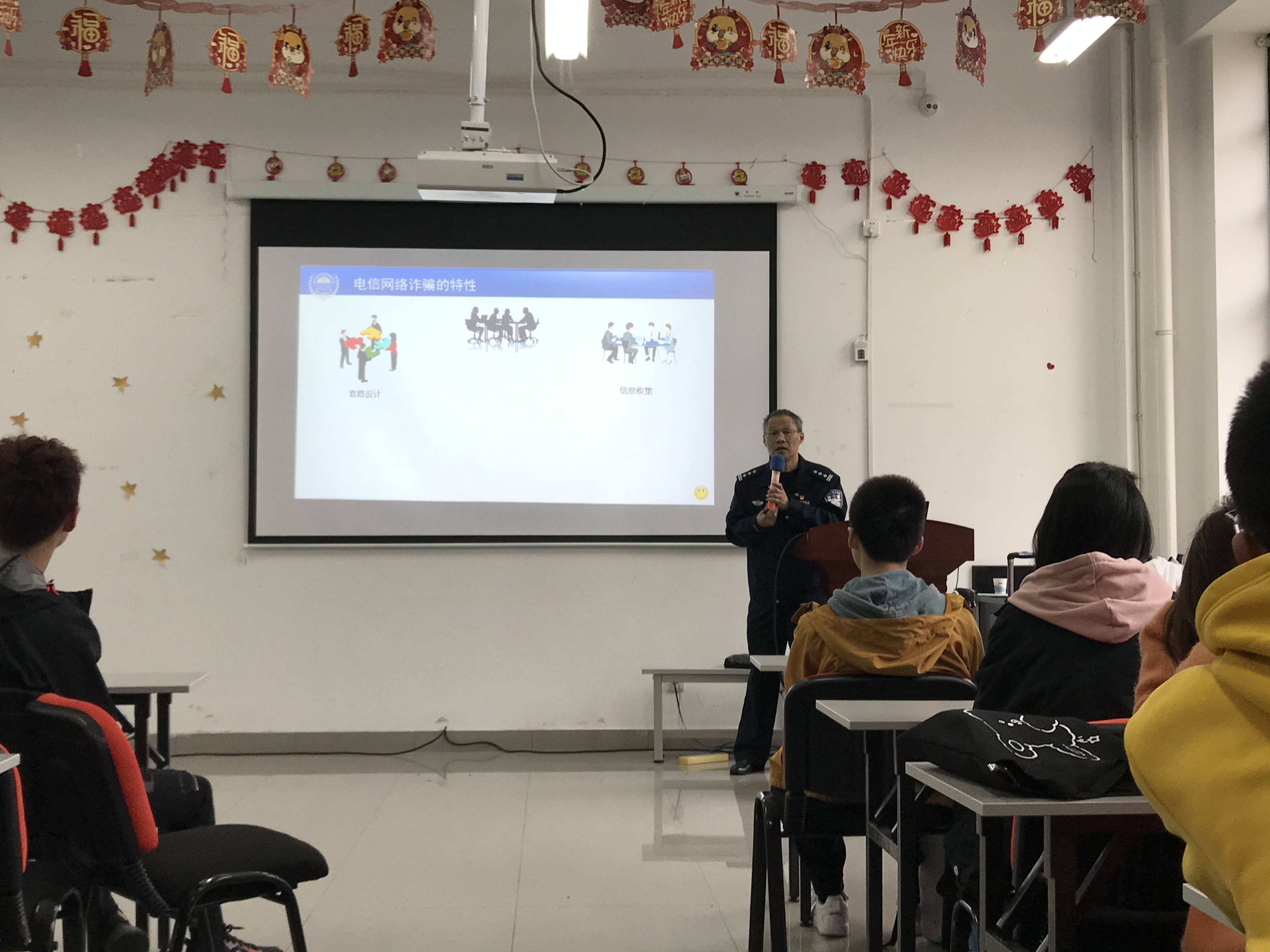 在讲座中,高校派出所公安干警从“诈骗案例、诈骗手法以及精准防诈骗”三个篇章进行详细讲解。通过近期海湾高校高发的“互联网游戏装备销售、互联网刷单、互联网色情诈骗”等翔实案例,进一步剖析相关案件的作案手法、作案套路,通过案例让广大同学们进一步了解诈骗的惯用手法和套路,提升广大学生的防骗意识,主讲人强调“特别是在遇到突发紧急情况通过微信、QQ等好友借钱的惯用诈骗手段时,要通过向亲友拨打电话逐一核实,避免因小失大”。为进一步提升此次安全教育讲座实效,主讲人还在现场通过学生亲自体验“网络搜索、给亲友发信息借钱”等现场防诈骗体验互动,切实提升防诈骗安全教育成效。