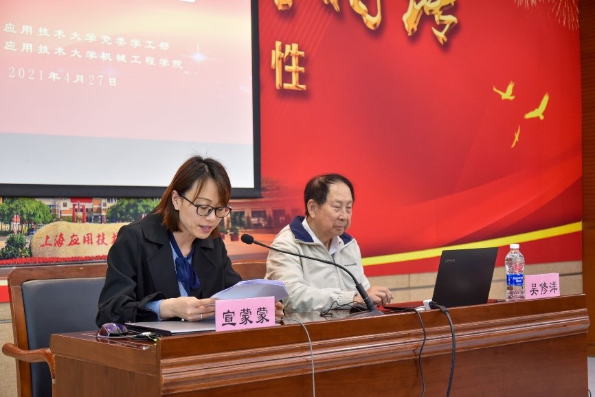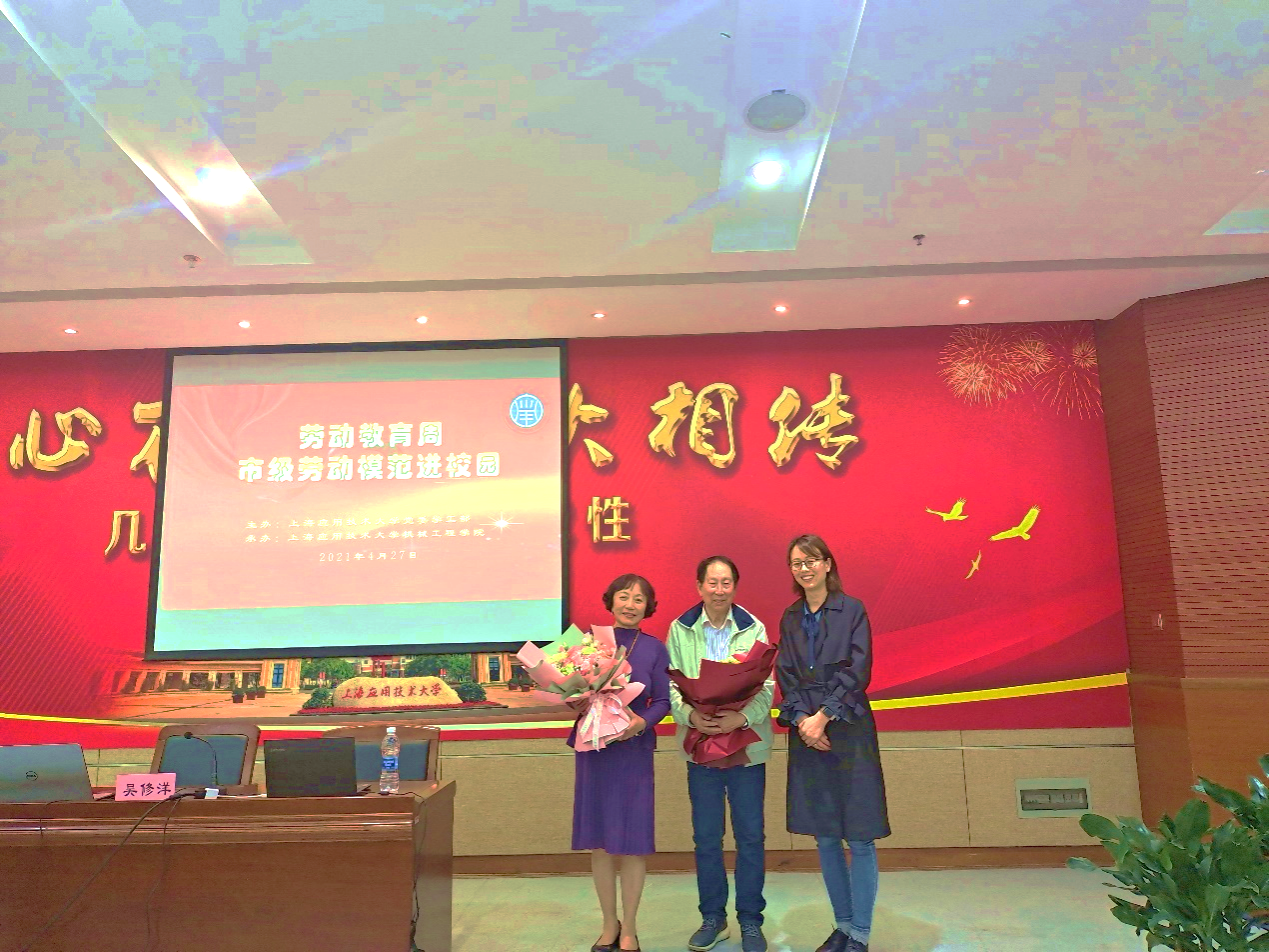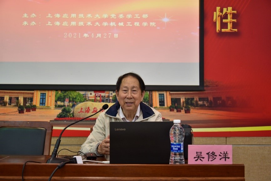机械工程学院于2021年4月27日下午13:00在图书馆B101举办了“薪火接力劳动魂,市级劳模进校园”活动。出席本次活动的嘉宾我们荣幸的请到了上海市劳动模范吴修洋老先生及他的夫人朱佩英女士来到现场,同时莅临现场的还有院党委书记杨瑞君老师,院党委副书记、副院长宣蒙蒙老师,学办主任王宏老师,以及学办刘红星、马娜、邓士杰等各位辅导员老师。