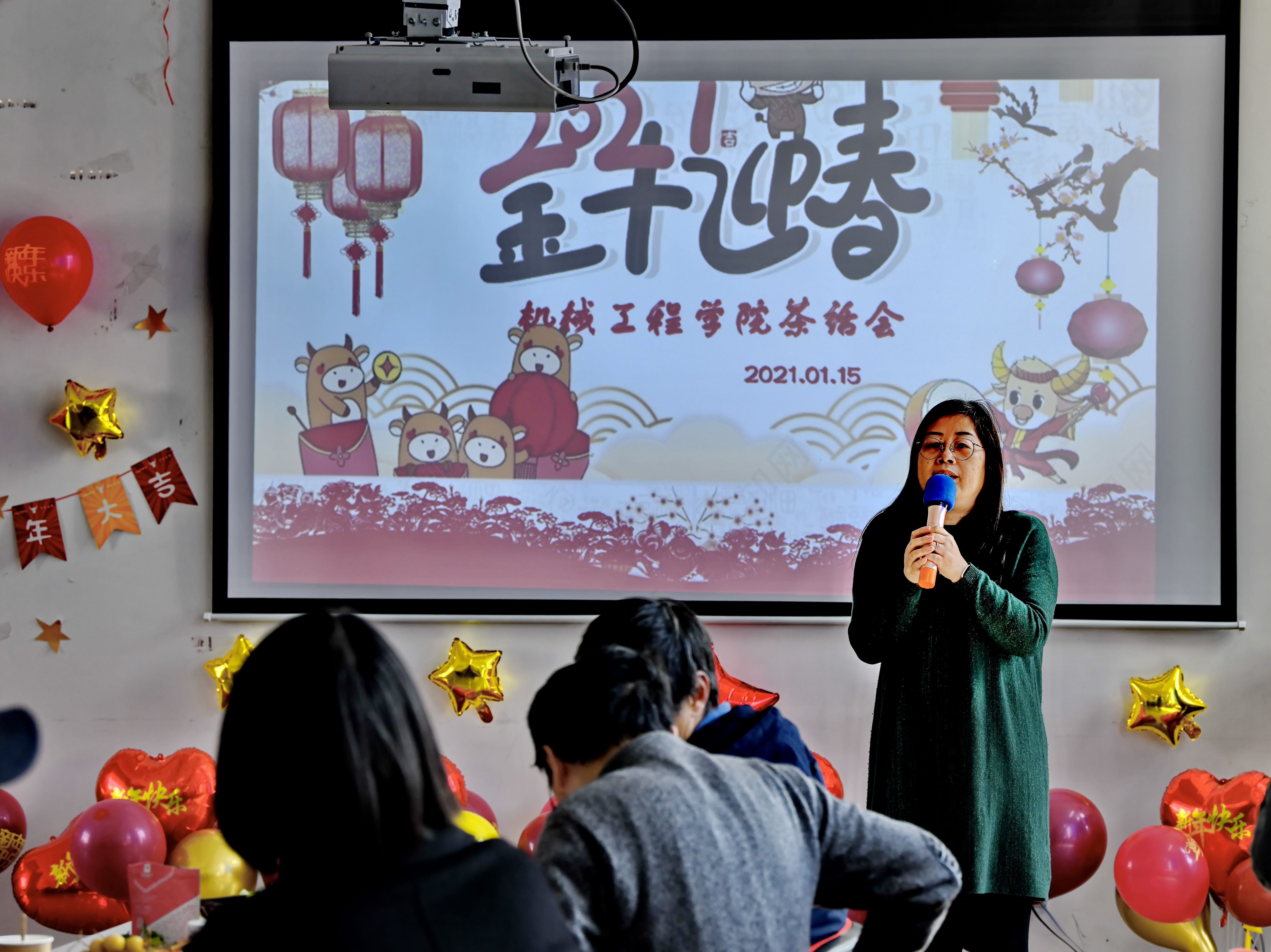 机械学院党委副书记、院长张慧敏做了机械学院2020年度工作总结汇报。2020年度入职的10余位新进教师逐次向大家做了自我介绍学院工会精心组织了各种趣味活动包括歌曲《我和我的祖国》、词语接龙、猜电影、踩气球等,茶话会现场气氛热烈、其乐融融,欢声笑语。新的一年开年之际,机械全体教职员工通过茶话会的方式,凝心聚力,共话未来,力争能有更为上佳的成绩。