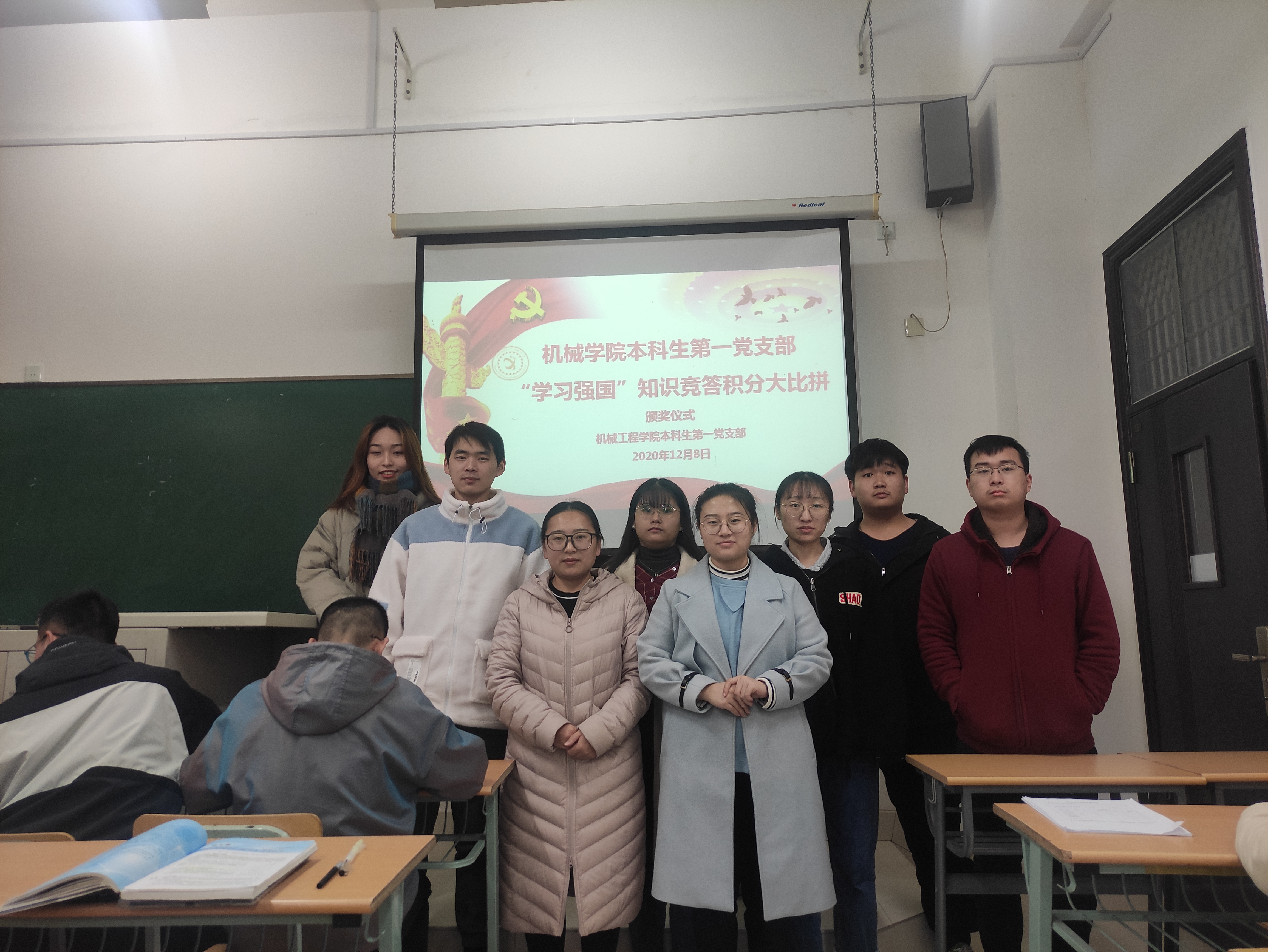 12月8日,机械工程学院本科生第一党支部组织了“学习强国”知识竞答积分大比拼颁奖仪式。本科生第一党支部书记郑慧参加会议,支部全体成员出席。