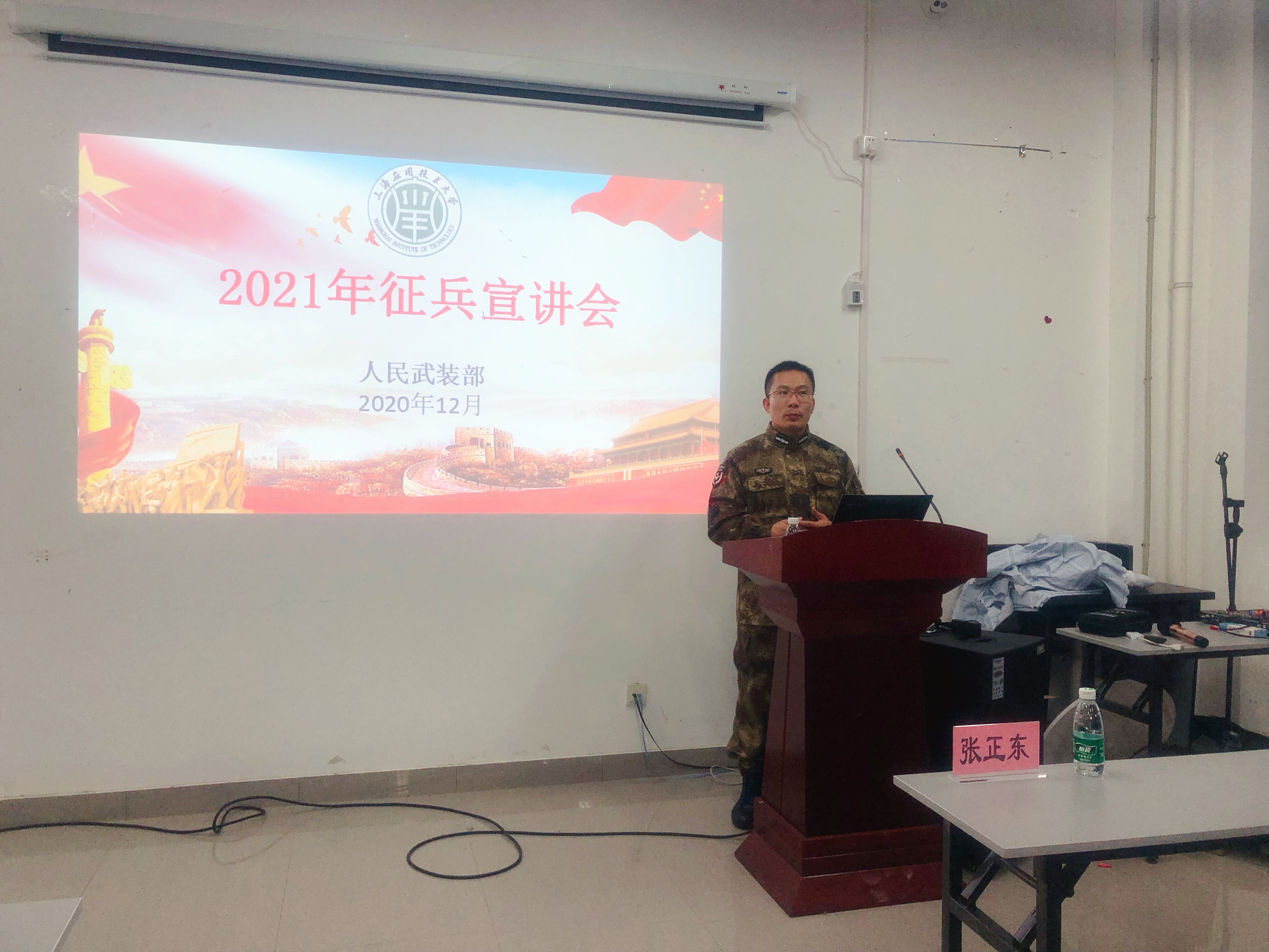 青年兴则国家兴,青年强则国家强。会上,张正东结合习近平总书记写给南开大学8名新入伍学生的回信,指出当代大学生参军入伍、报效祖国的现实意义。接着,他介绍了我校在征兵工作中做出的杰出贡献。17年来,我校多次获的“上海市征兵工作先进单位”,为部队输送了1002名优秀大学生士兵。同时,对征兵育人、大学生参军入伍优待政策、参军报名的基本条件与学生进行详细的解读和分析,其中包括了落户安置、经济补助、学业优待、报考军校与提干等学生比较关心的问题。最后张老师向同学们发出征集令:让我们趁年轻,有梦想、有热血、踊跃投身火热军营,用自己的亲春和热血谱写人生华丽的诗篇。